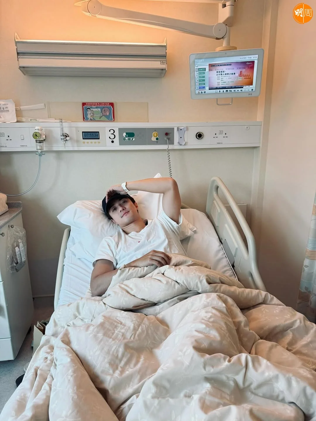 37歲黃庭鋒早前與高海寧、周嘉洛出埠拍攝《Grand住去利物浦》節目,今日他在社交網突然貼上躺臥病牀照,透露因nose block(鼻塞)準備做手術。照片中面色青白的他留言:「我:醫生,係咪一定要做?醫:做咗係永久的。我:咁好啦!呢個係我嘅病牀,呢兩晚多多指教!醒返後會係一個更強嘅我!好快見!」一眾藝人好友方力申、張寶兒、陳敏之、陳懿德、陳自瑤、冼靖峰、何晉樂等,及網民都留言打氣,祝他早日康復。