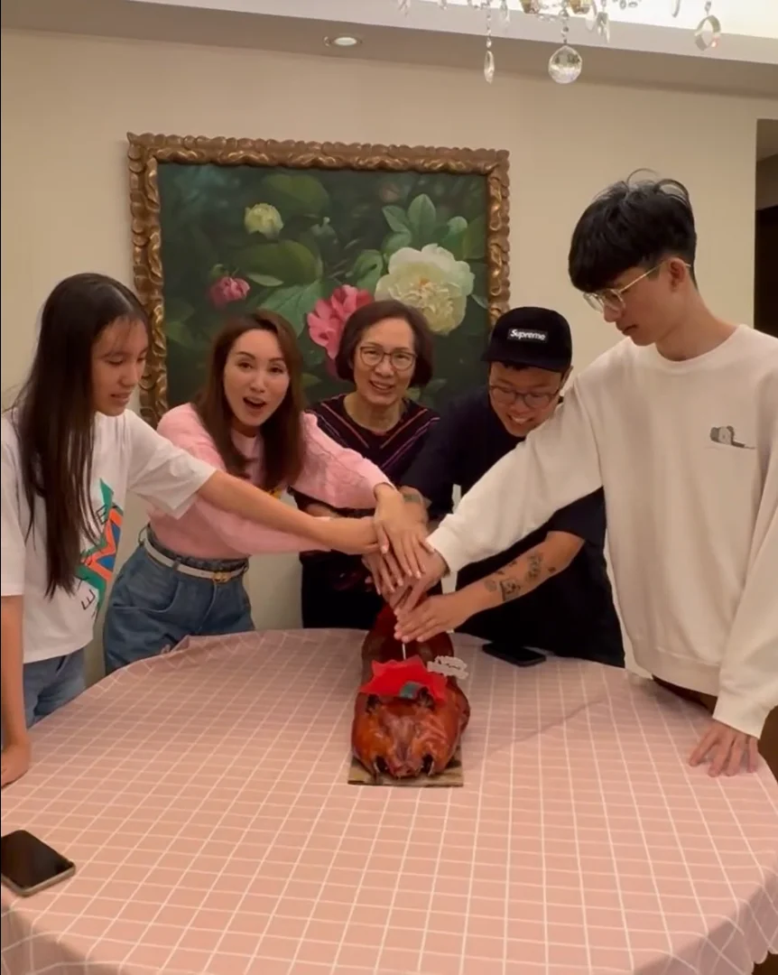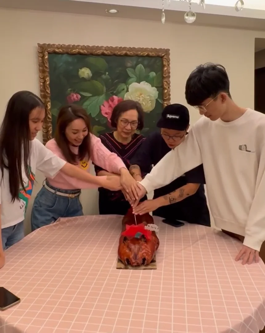 昨日(2日),她更獲家人送上燒豬慶祝,別開生面的慶生方式令她似是回想起以前拍劇拜神的日子,可盈在社交平台分享照片並寫道:「開鏡拜神切豬儀式試得多,但這方式賀生日還是第一次,謝謝我親愛的妹妹Love you so much !並祝親愛的媽媽幸福開心!家人們身體健康!」