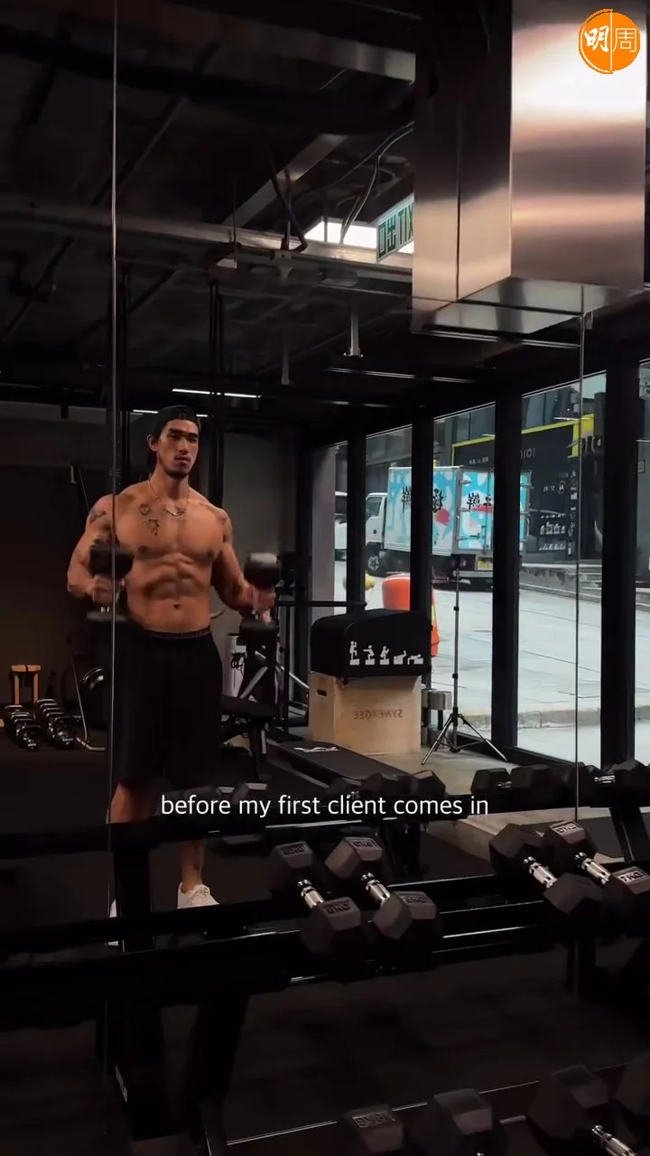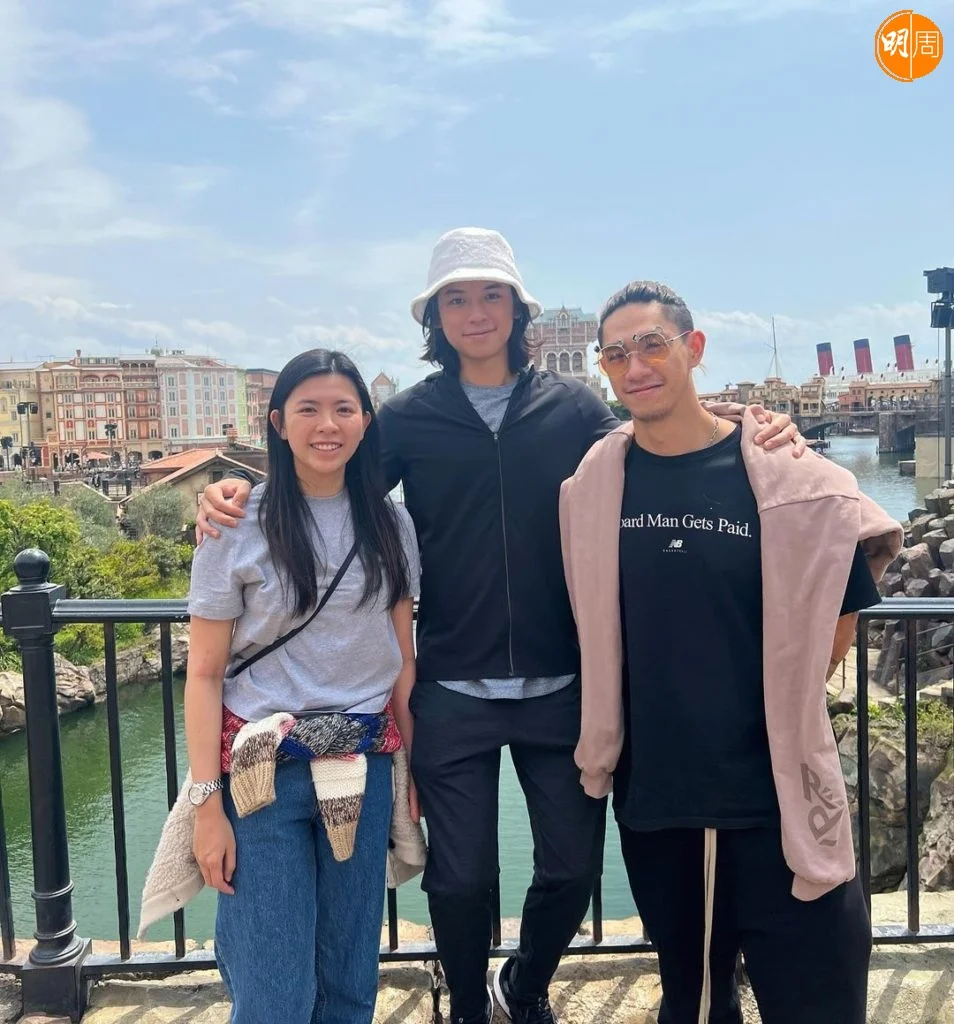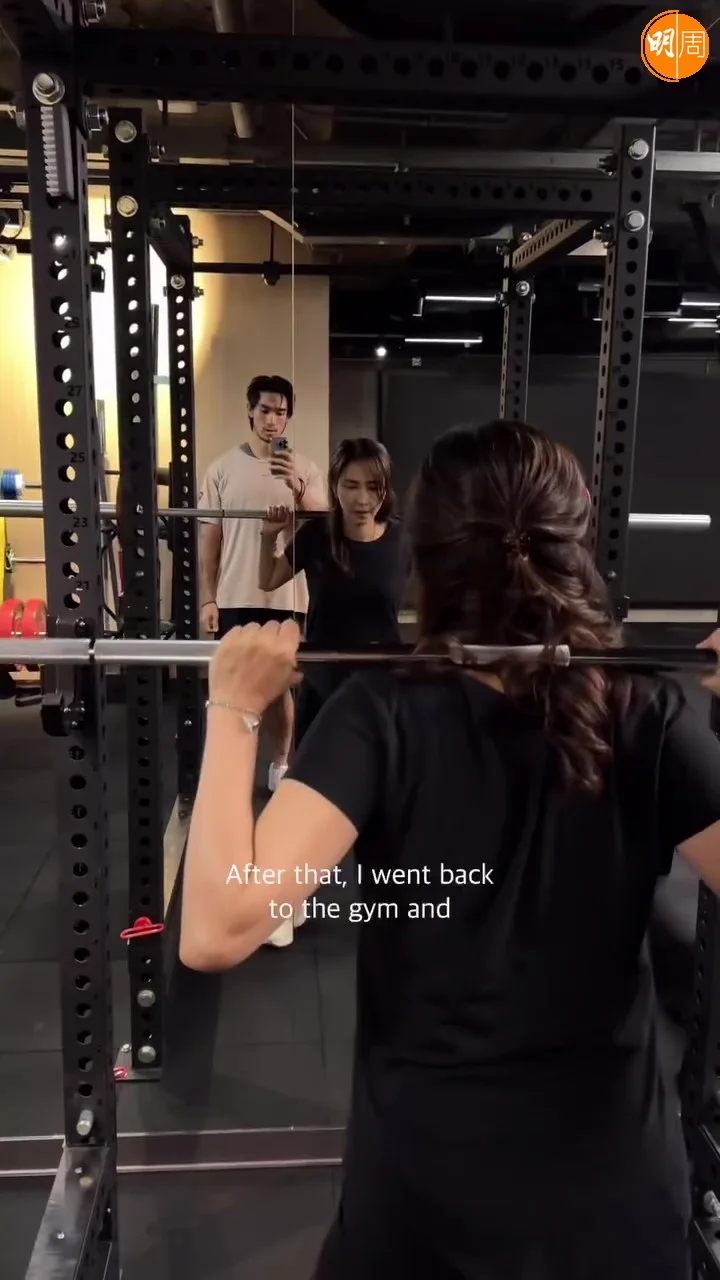 吳婉芳輕鬆舉鐵後同阿仔拳擊打氣。