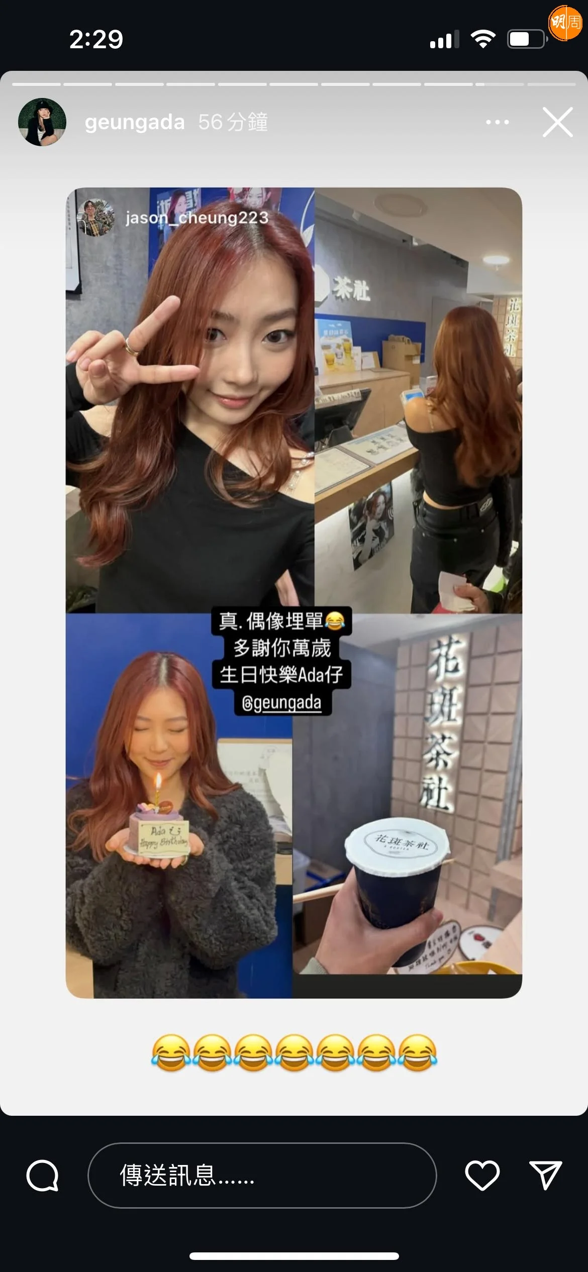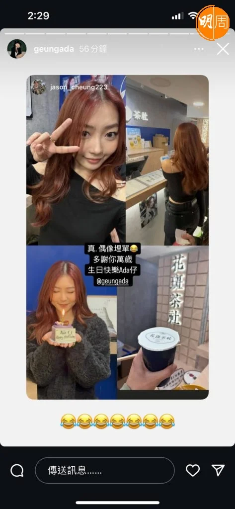 Ada坦言,以往生日都是收到message或fans的DM祝福,生日應援是人生第一次,「今次佢哋幫我整咗個茶飲店嘅應援,有手幅、鎖匙扣、postcard,呢啲都係第一次發生喺我身上,所以都係一個surprise。」Ada落舖打卡當日,有歌迷聞風而至,現場跟她唱生日歌、切蛋糕及送上禮物,Ada表示:「所以今年俾我嘅感覺超級唔同,而且覺得『吖,原來有咁多人錫我!』嘅感覺!」知道歌迷於一個多月前已開始籌備,Ada除了感動亦十分識做,當日自掏腰包請全場fans飲茶,以示謝意。