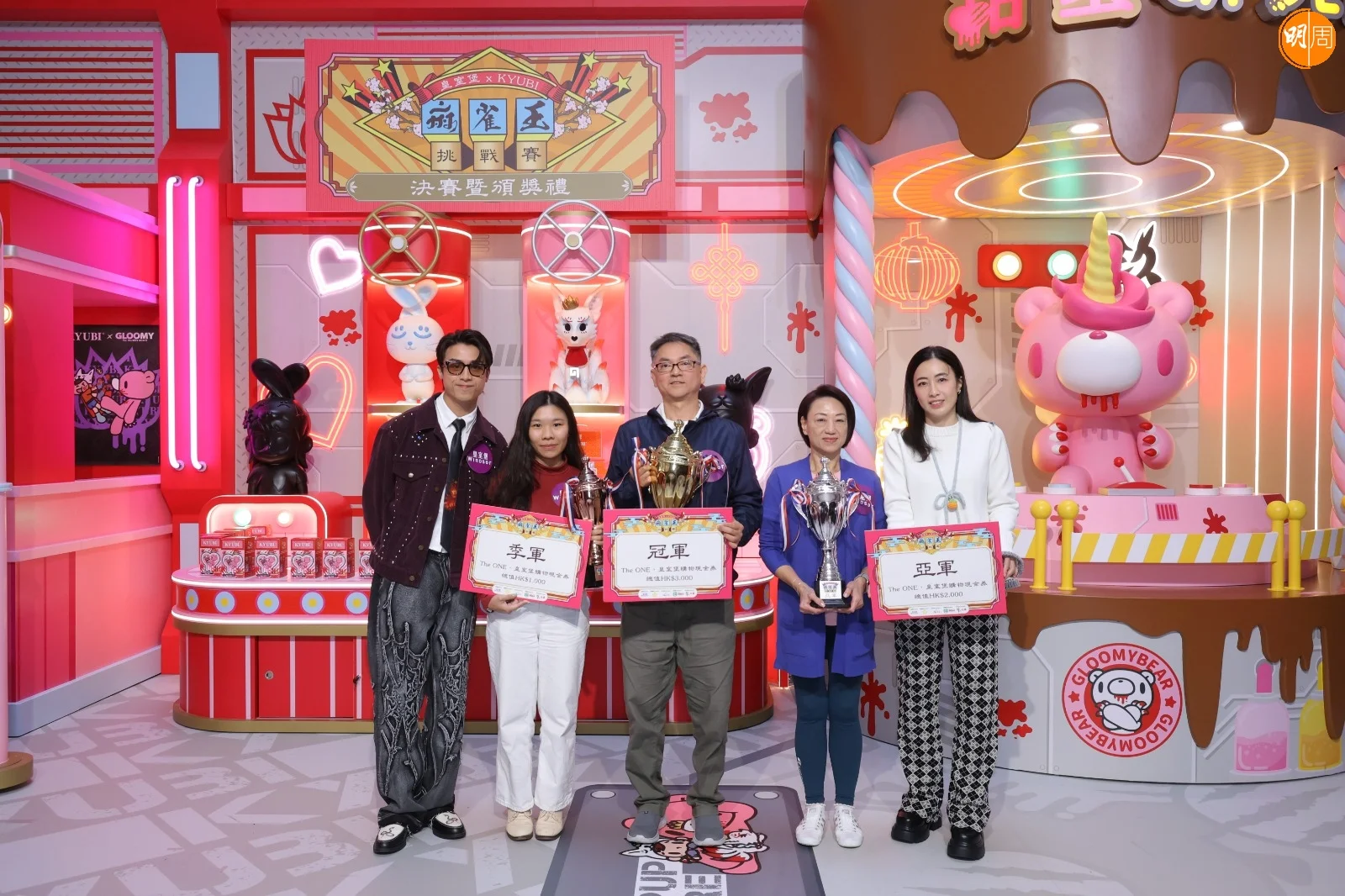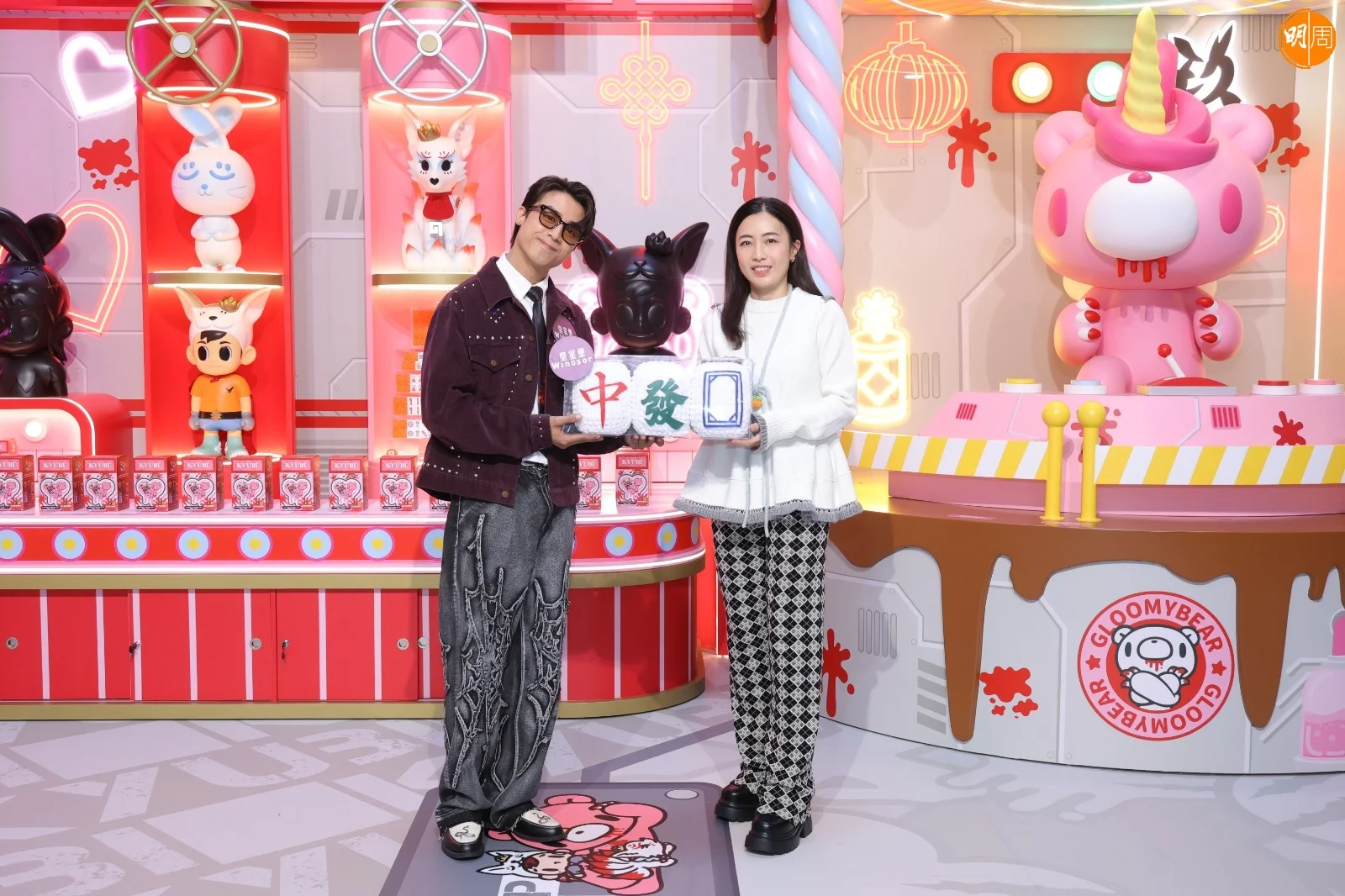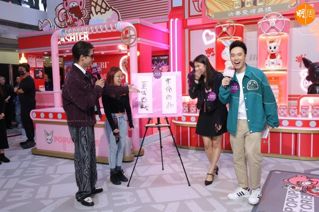 江𤒹生(AK)昨日(7日)與華人置業集團行政總裁劉陳凱韻(甘比)一同出席麻雀王挑戰賽頒獎禮。活動中,二人抽取麻雀並根據牌面字樣創作吉祥揮春。AK 寫下「八達亨通」時劃蛇添足,變為「八達享通」,拍照時亦俏皮地用手遮擋「享」字,笑稱「八達通」可以找他做代言,「唔好剩係搵Ian(陳卓賢)。」
