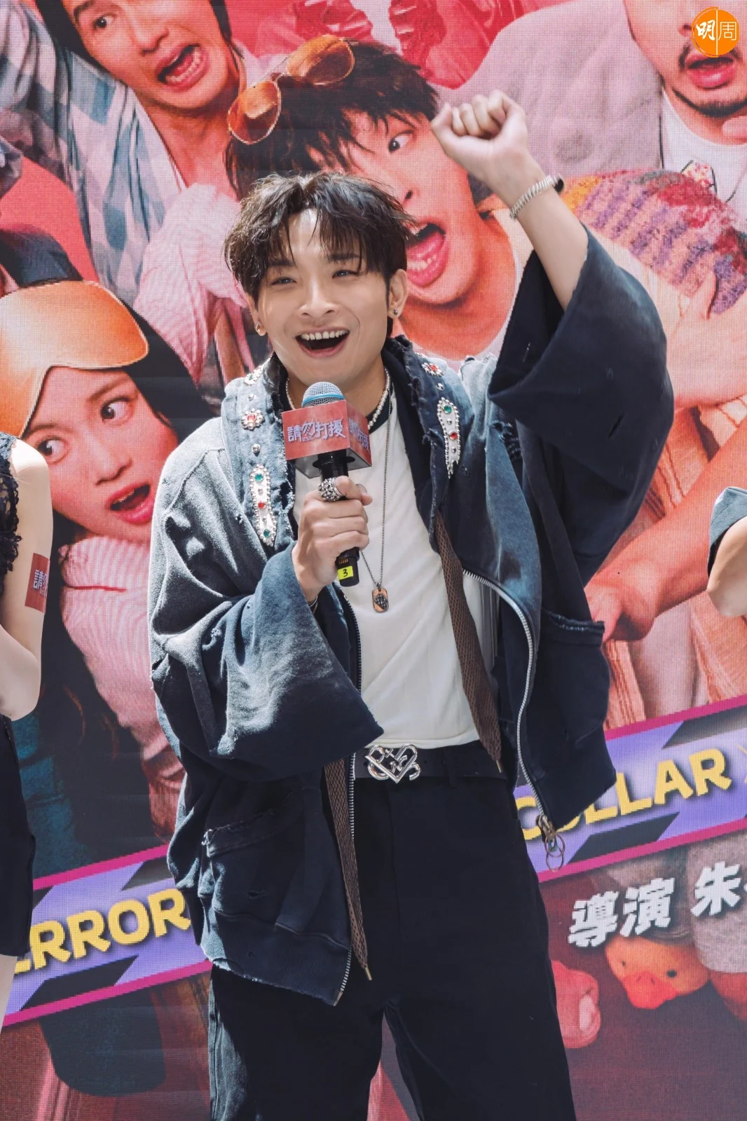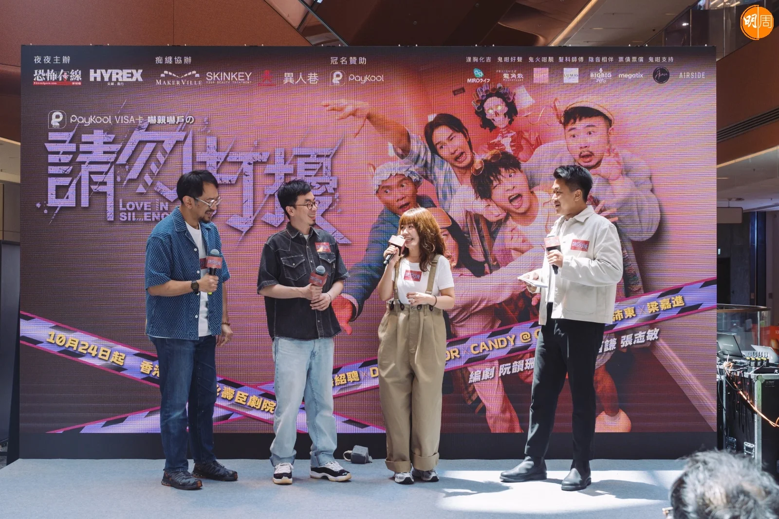 身旁的Candy即賣口乖,說期待跟Dee合作,Dee就笑說:「Thank you,這些咪識撈囉!」Candy續說:「今次我知道有Dee哥演出……」阿Dee即搶着說:「你吹大啲吖!」Candy大讚Dee哥是ViuTV ERROR界的演戲擔當和視帝,所以一定期待。Dee笑說:「係視帝,加括號未攞,哈哈!」Candy稱以前有看過麥東的舞台劇,今次再加上Dee哥,感覺兩人很搞笑,希望自己可以變成一個搞笑的人。