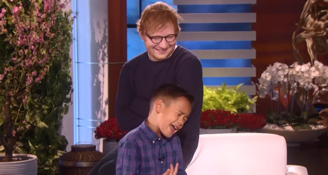 一名油頭小男孩早前在節目上翻唱英國新世代歌手Ed Sheeran成名作《Thinking Out Loud》,近日片段又在網上瘋傳,在片段中可見梳了油頭的小男孩演唱時七情上面,到演唱完畢後才驚覺原唱者就在身後,表情頓時變了,剛剛還陶醉在《Thinking Out Loud》的音樂世界,轉眼間害羞得想找個洞鑽進去,最後他還是鼓起勇氣跟偶像說聲:「你好。」