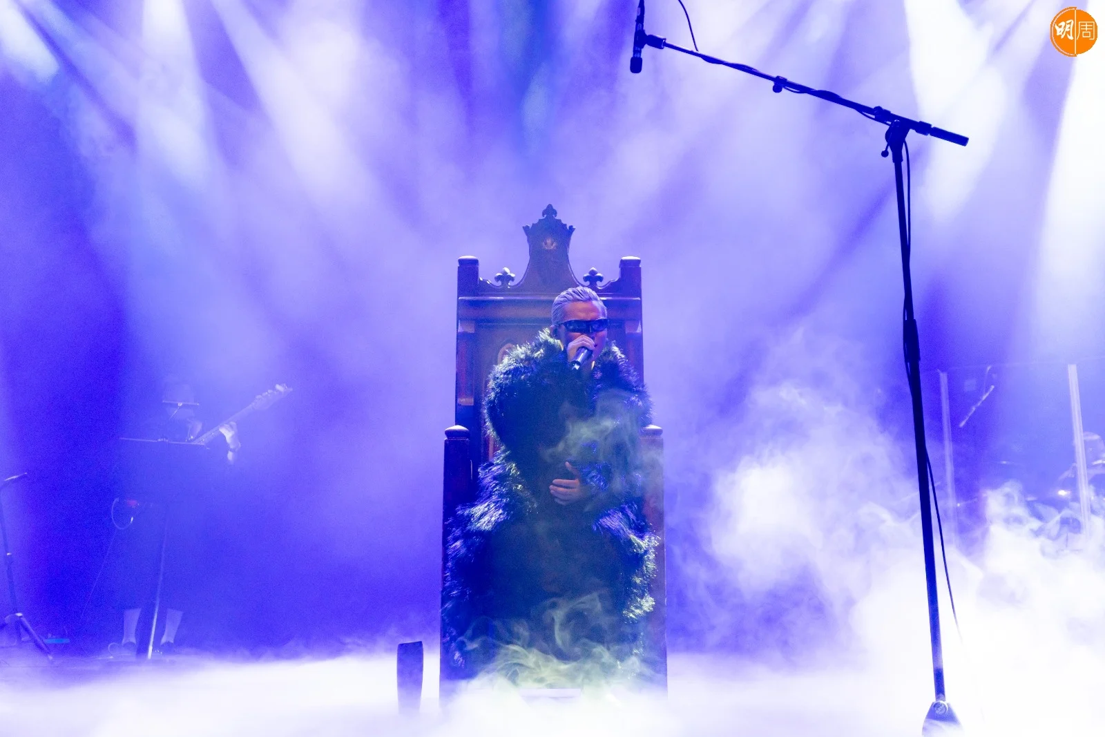 中段,Gareth獨坐於藍色燈光映照的皇座上,接連演唱《國際孤獨等級》與《緊急聯絡人》,將那份極致的「孤獨感」刻畫入微。即使全場呼聲最高的《用背脊唱情歌》已然唱畢,Gareth卻因「一位重要的人在場」而主動二度encore,誠意引爆全場掌聲。