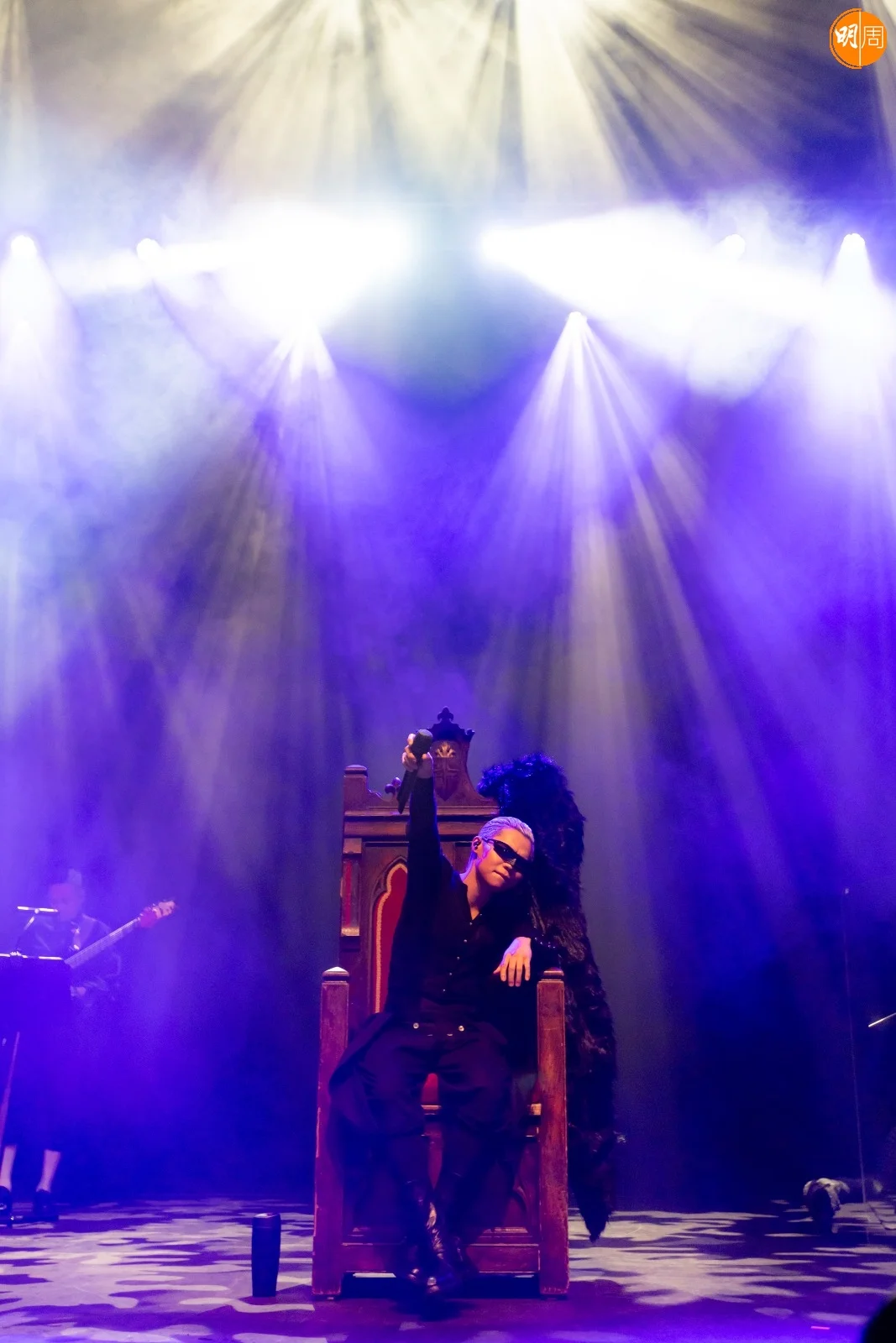 緊扣「心傷王子」主題,舞台中央矗立著一座孤獨皇座,瞬間將淒美華麗的氛圍感拉滿。Gareth身披毛毛大衣、戴着太陽眼鏡,手持小提琴登場,以一曲《花樣年華》揭開序幕,哀怨琴音瞬間俘獲全場樂迷。