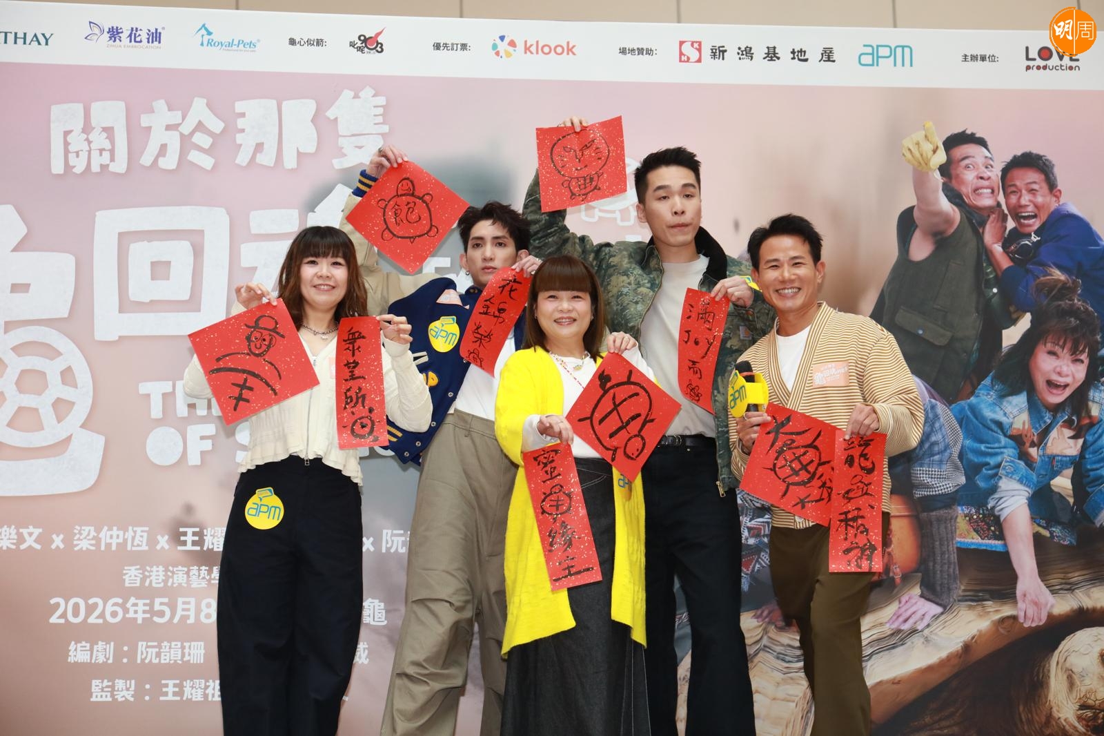 MIRROR隊長楊樂文(Lokman)、阮小儀、梁仲恆、阮韻珊、王耀祖今日(1日)出席舞台劇《關於那隻龜回魂的故事》記者會。首次參演舞台劇的Lokman將飾演一名「黐飲黐食」的躺平族看更,他笑言角色與自己反差極大:「圍讀時已經覺得係一個挑戰。」為了貼近角色形象,他預告過年期間會刻意「食多啲」,務求增磅演活人物。