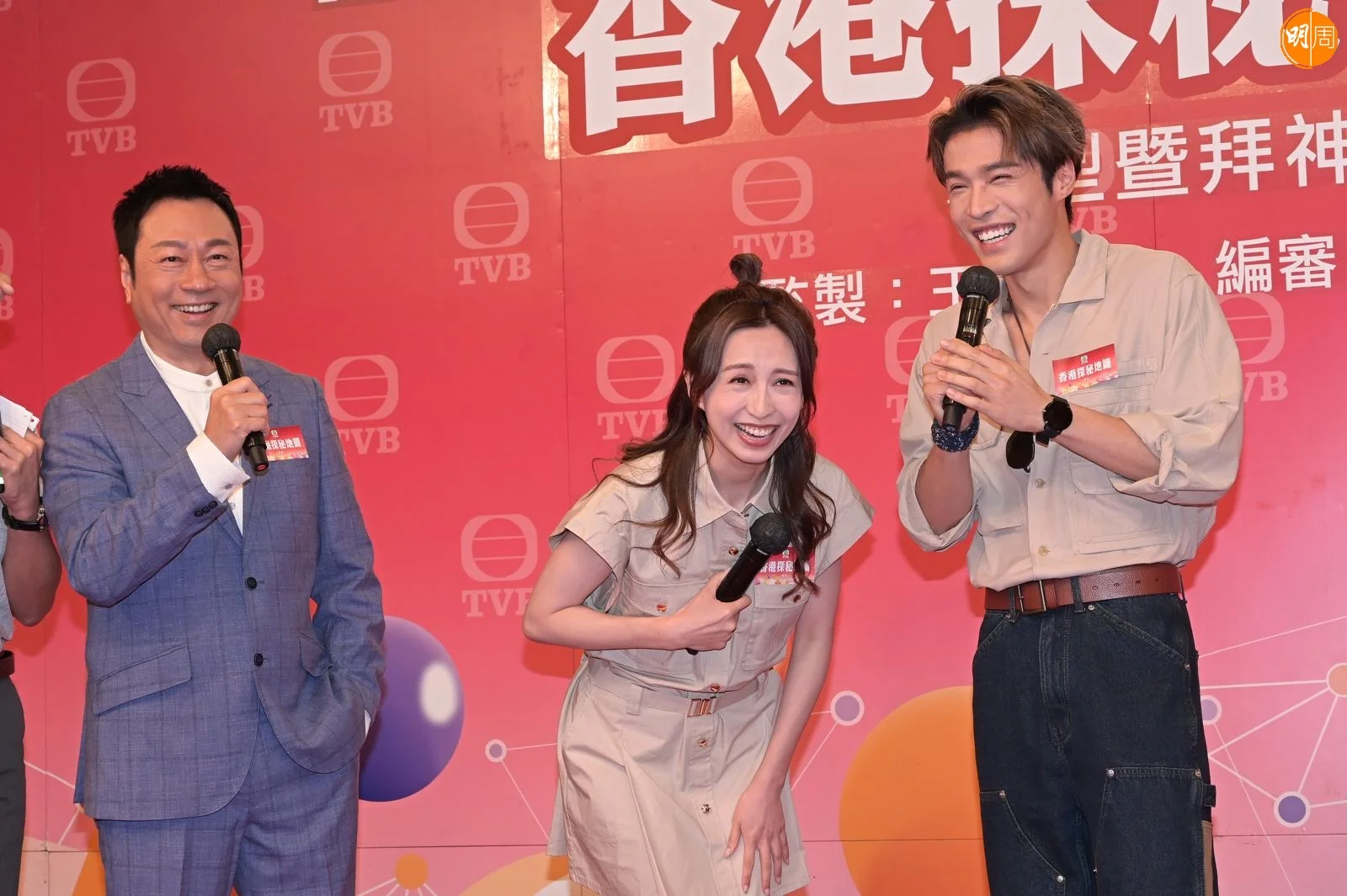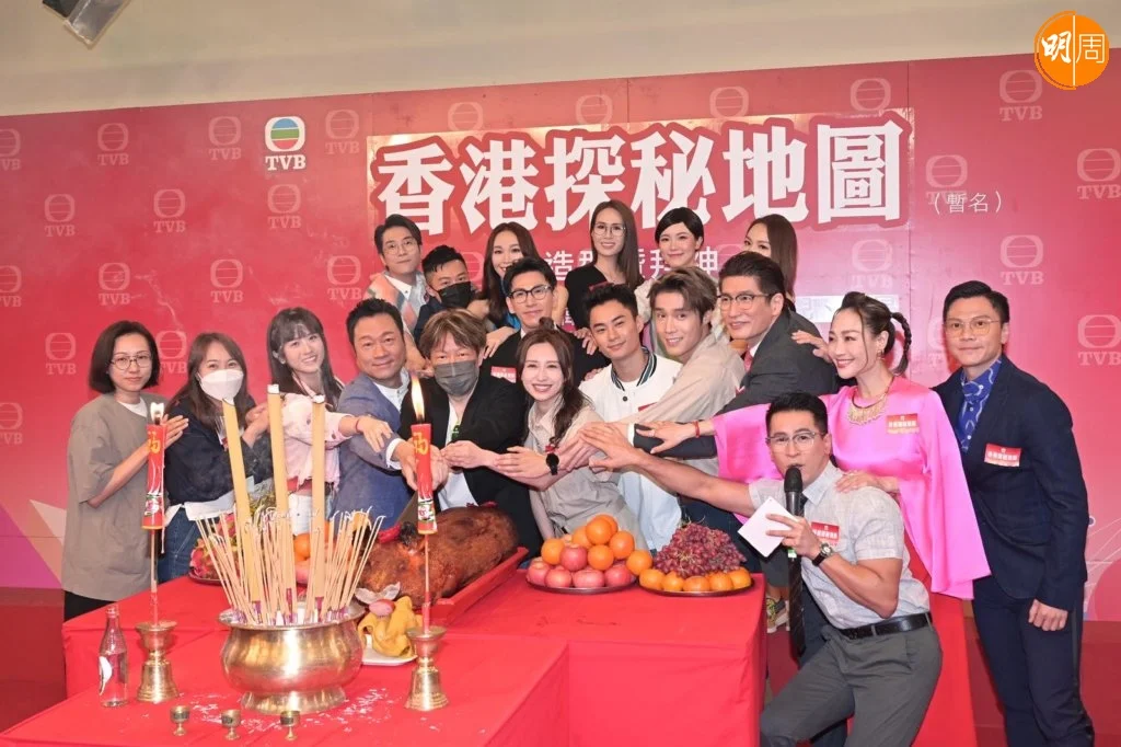 黎耀祥、龔嘉欣、丁子朗、孔德賢、倪嘉雯、袁文傑等今日(14日)出席新劇《香港探秘地圖》造型及拜神,丁子朗在劇中飾演導演角色,他說演繹雖然有難度,都不及溝姐姐難度高,「今次真係有難度挑戰,因為要溝姐姐,劇中講我要溝龔嘉欣,自己第一套劇已經同她合作,所以再合作都好開心,今次又可以同祥哥(黎耀祥)合作,我想知可以喺佢身上學到咩,我當自己上咗一堂免費演藝課程,真係好抵。」