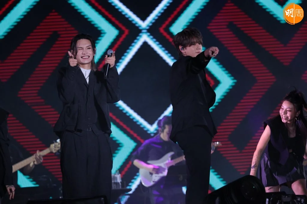 MIRROR「妹豬組」四子一登場即引爆粉絲尖叫,Jeremy預告:「我哋啱啱八點有啲嘢出咗!」Edan即席考粉絲新歌名,台下秒答「《DNA is U》」,他搞笑反問:「一試就試到你哋冇專心睇騷啦!」Anson Lo笑稱全因「心靈相通」。Jeremy更爆成員們「誰最遲出po」引發網上熱議,Edan急攔「劇透」,互動笑料百出。演唱《男兒當入樽》主題曲時,姜濤格外興奮,表示非常期待這首歌,期間更做出打籃球動作。
