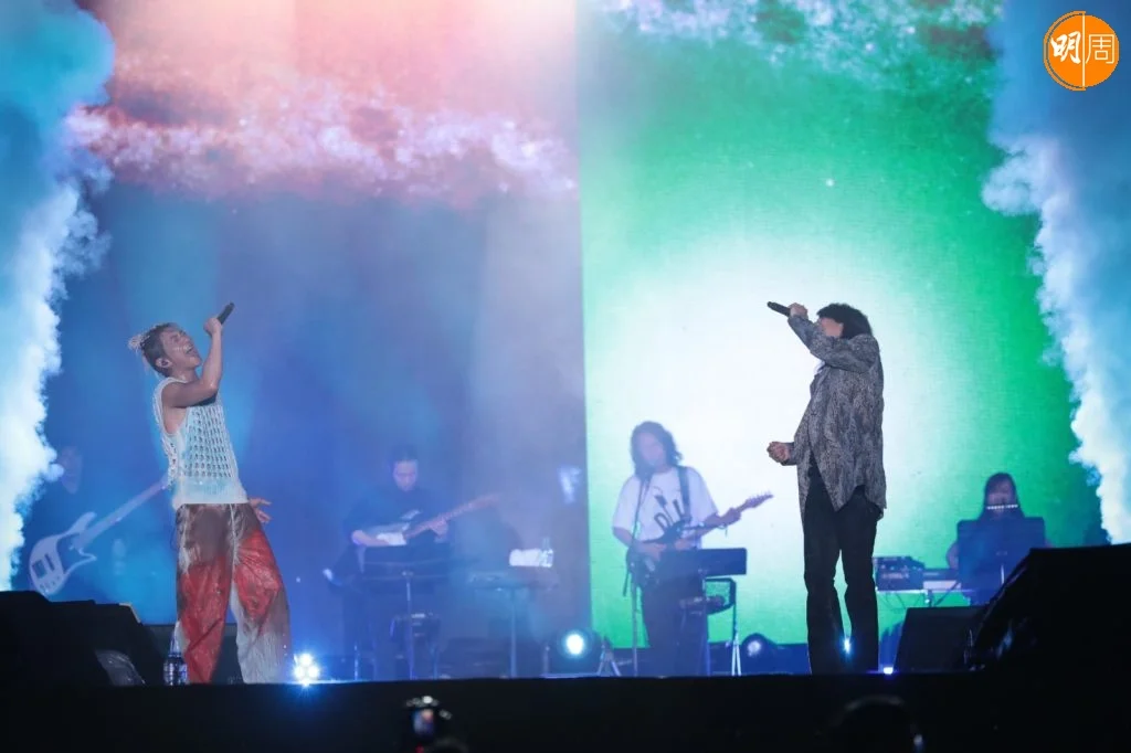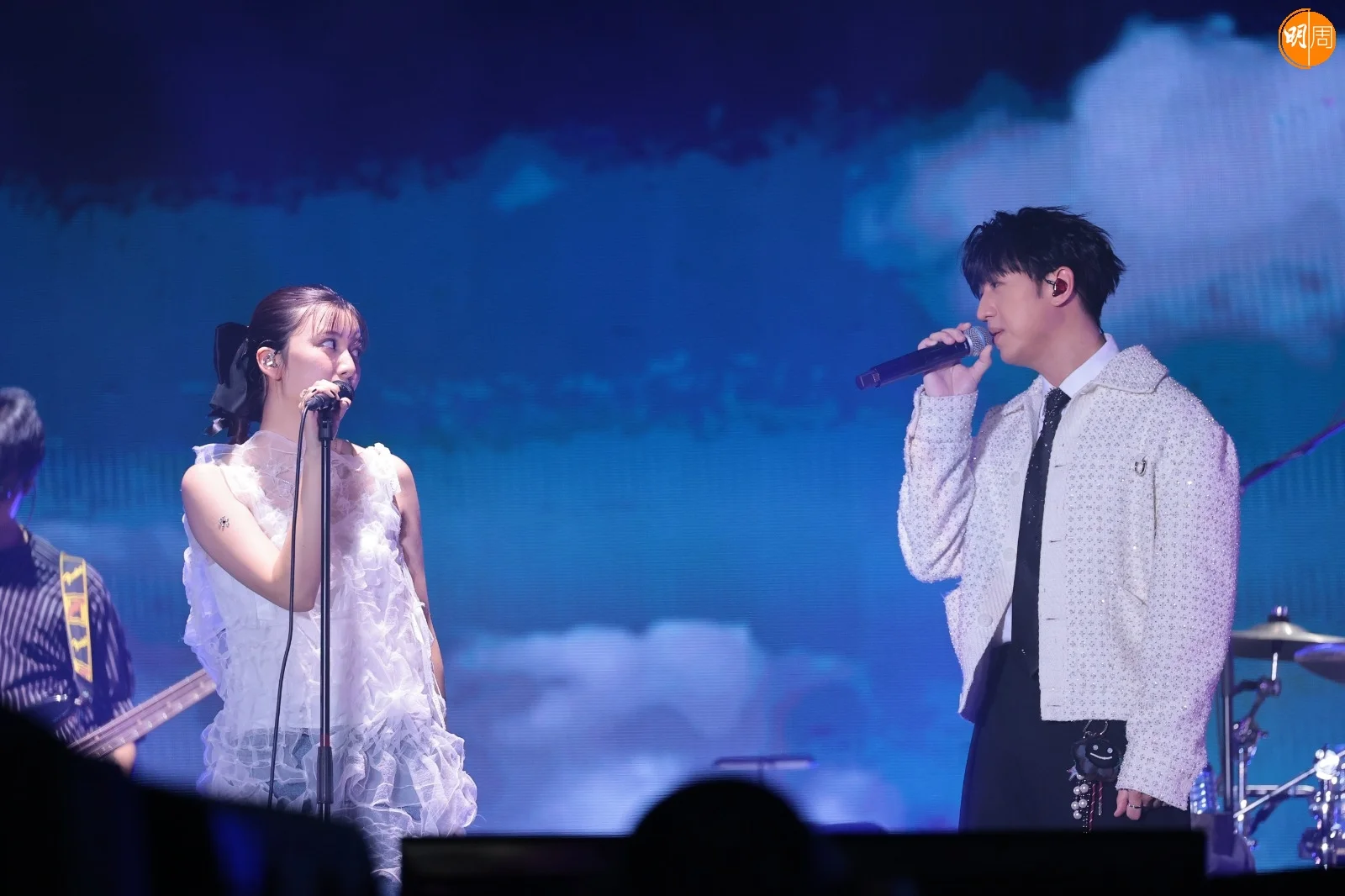 緊接登場的是來自日本的adieu,以廣東話親切問候觀眾。她與Jay合唱《旅立ち》,Jay大讚她白裙造型可愛,adieu則開心分享來港興奮心情,還品嚐了最愛的蛋撻。Jay獨唱時,《報復式浪漫》配上漫天泡泡,浪漫氛圍拉滿!他感動表示,能與觀眾透過音樂互相療癒,是最幸福的事。