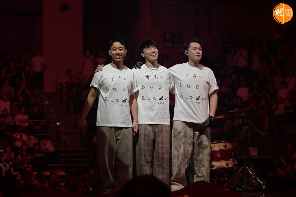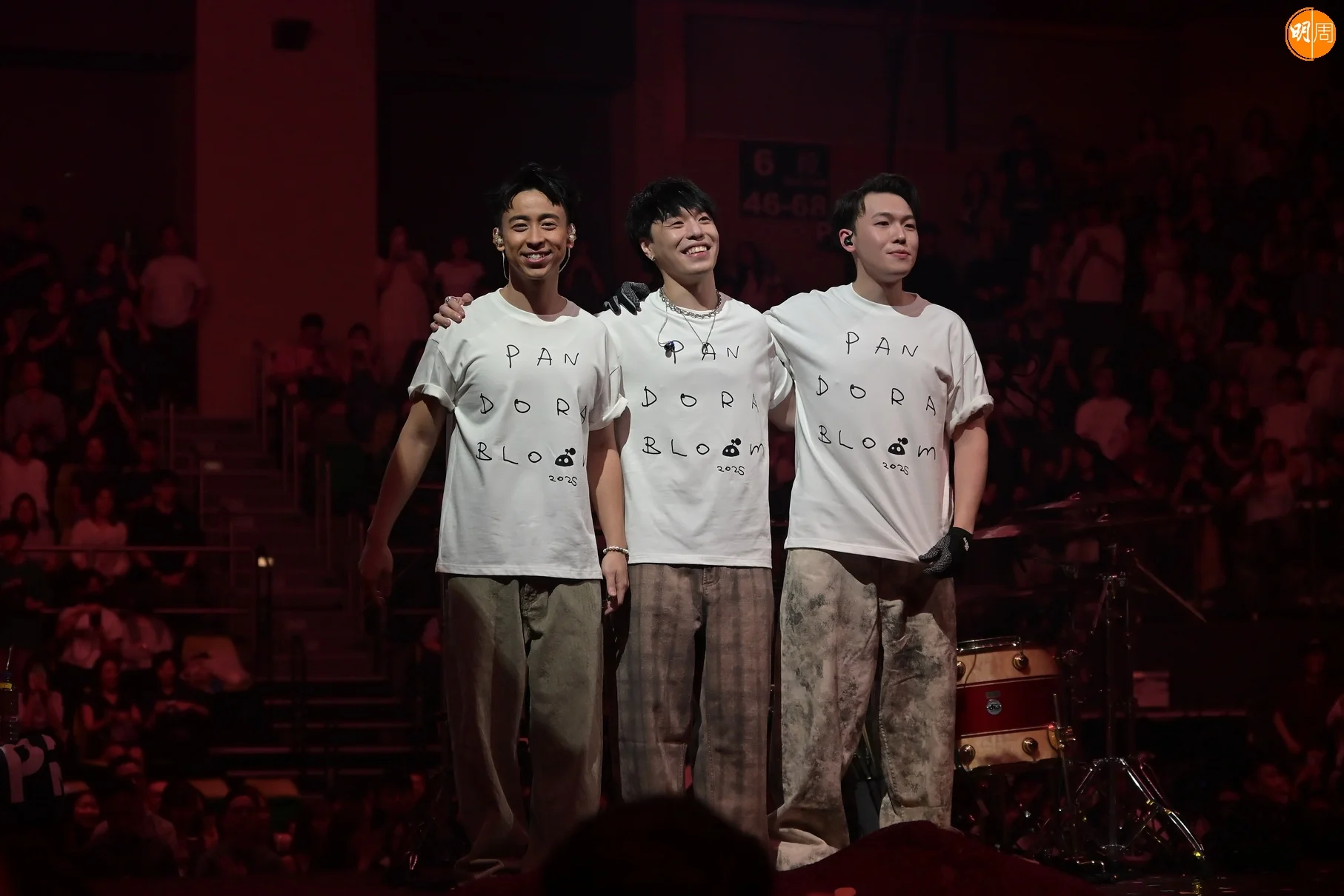 由低音結他手Anakin(阿勤)、主音兼結他手Tony,以及鼓手Michael(細佬)組成的獨立樂隊Pandora,出道七年,昨晚(15日)於麥花臣場館舉行《BLOOM LIVE 2025》演唱會。觀眾反應熱烈,逾千樂迷幾乎全程站立,獻唱《粉紅泡泡防護罩》時,六個大型透明泡泡隨粉紅燈光飄動,觀眾互動推送;而《痛痛快快活活去》、《緊急應變逃生法》、《花之生命》及《鄰家的你》等作品,更掀起全場大合唱。唱到出道作《捉緊心跳》時,Tony突然泣不成聲,他事後分享:「出道時沒甚麼人聽我們的歌,但今晚全場都陪着我們唱,最初說要開兩場,還擔心票賣不完……真的心懷感恩。」