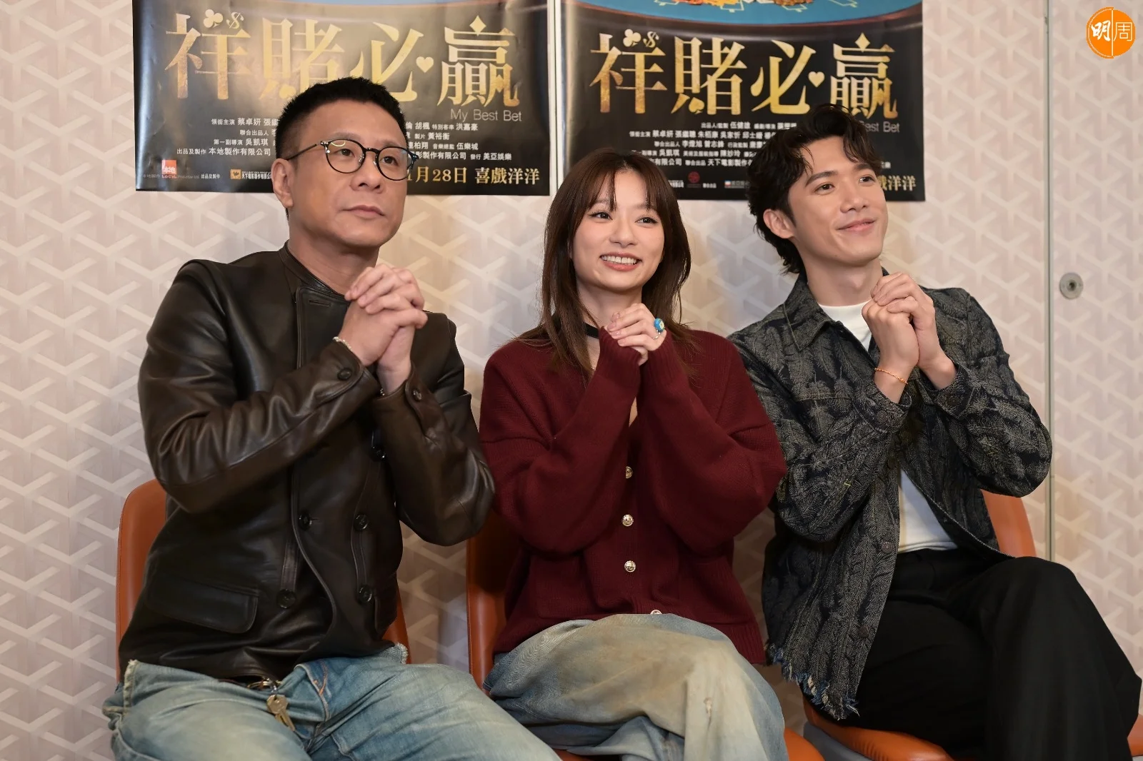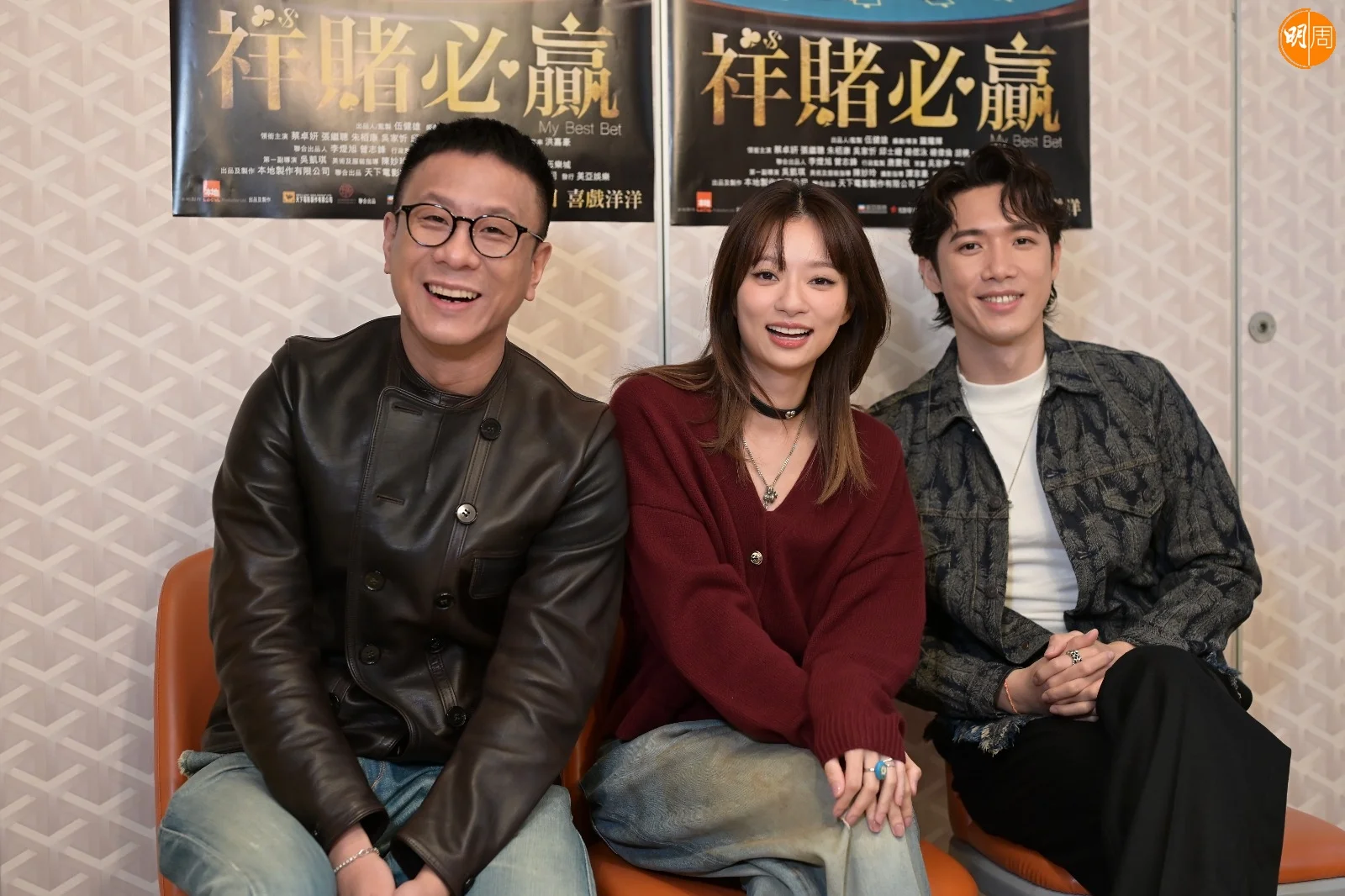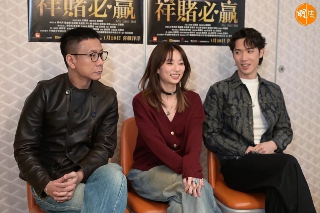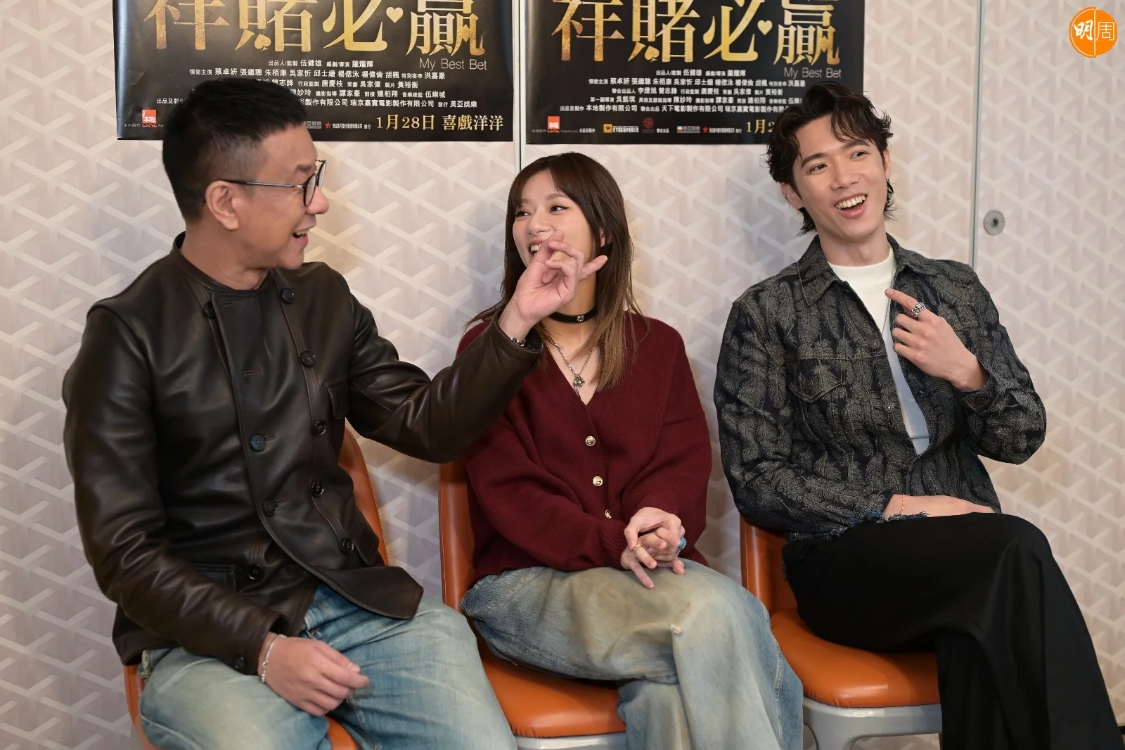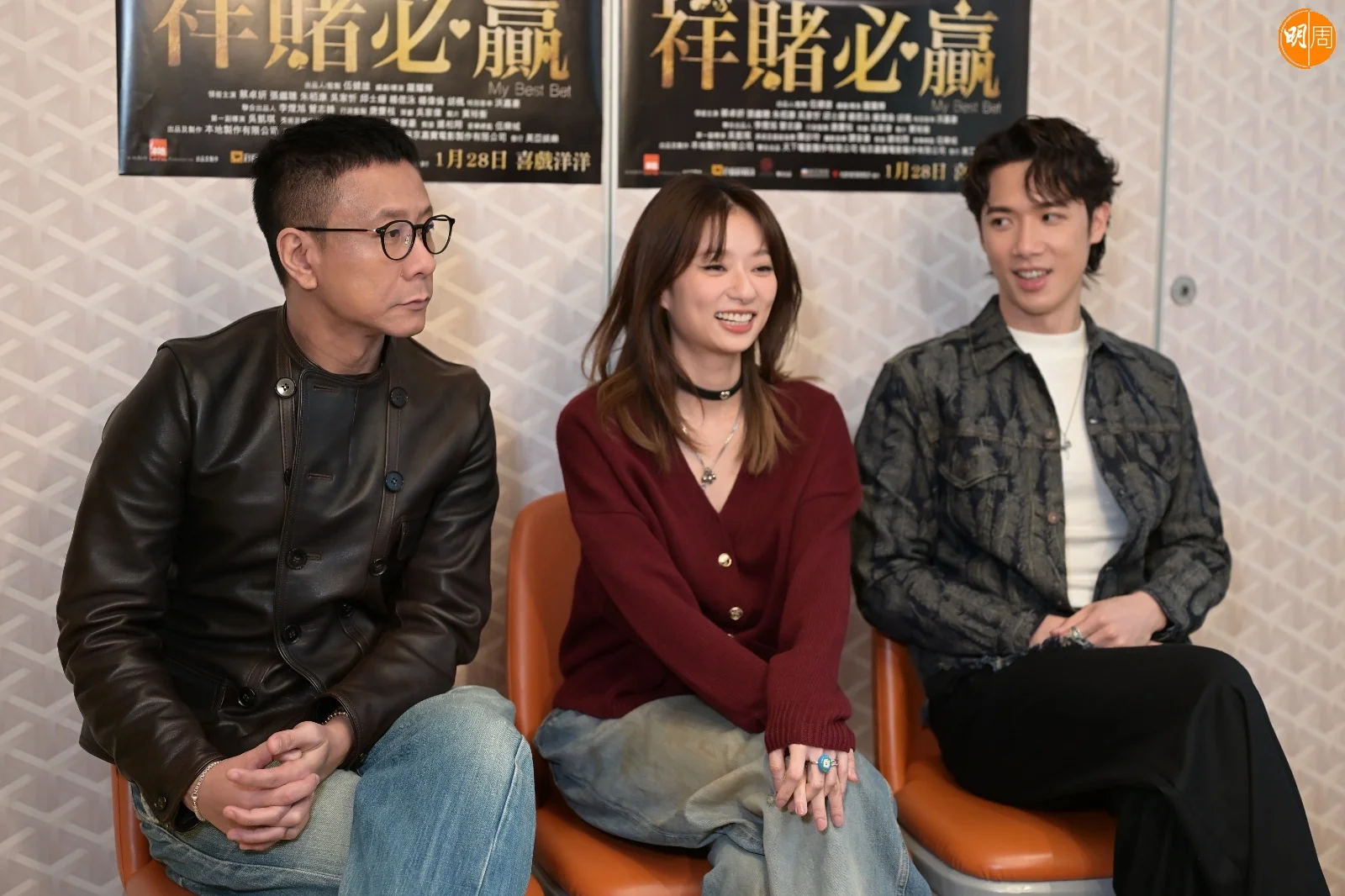 男團MIRROR成員邱士縉(Stanley)、吳家忻(家忻9896)及朱栢康(朱康)在賀歲片《祥賭必贏》有段三角關係,三人首次合作已非常合拍,戲裏戲外也笑聲不絕,Stanley亦趁機請教張繼聰和朱康演戲心得。