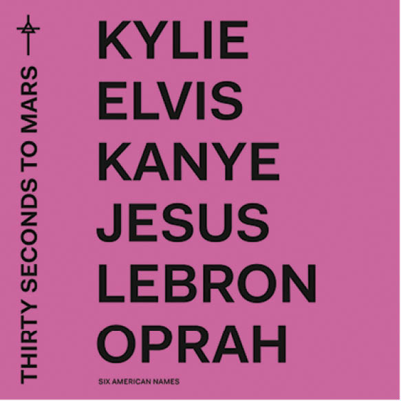 美國三人樂隊Thirty Seconds to Mars推出第五張大碟,對上一張相隔已有五年,這次標題明言唱的是自己國家,封面是一串名字,主音Jared Leto說意義像時間囊,記下此刻生活文化。專輯第一首歌《Walk on Water》也是第一主打,是重型、搶耳的電子搖滾,將當今美國面對的困擾寫進詞中,但如歌名所示,痛苦背後有宗教信仰的救贖;《Dangerous Night》請來DJ Zedd監製,是一首EDM電子舞曲,旋律緊湊,Jared的歌聲充滿爆發力。《Rescue Me》瀰漫電音,Jared唱得如飛翔的聲音之中流露智慧;《One Track Mind》驟聽像《格雷的五十道色戒》電影配樂般富挑逗性,曲中的結他solo非常出色。樂隊的曲風由最初的Hard Rock變得更電子化,更有利在全球走紅,新生代樂迷會喜歡。