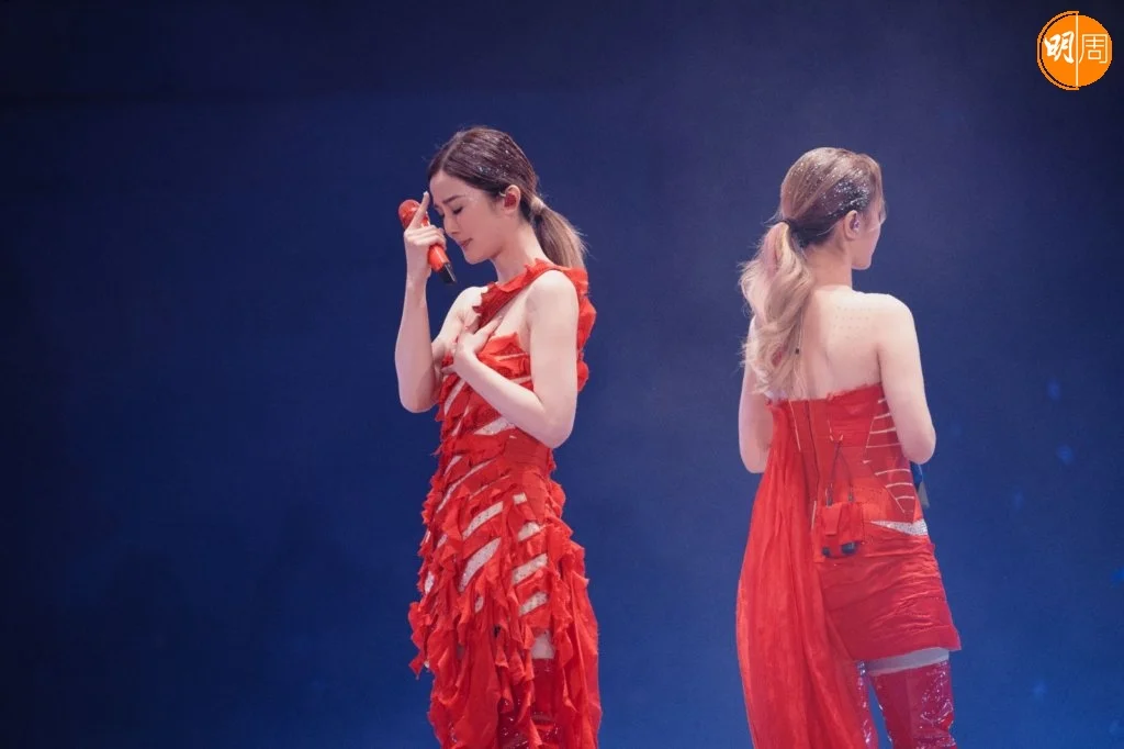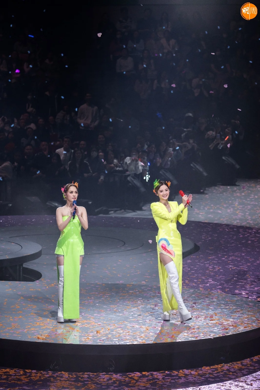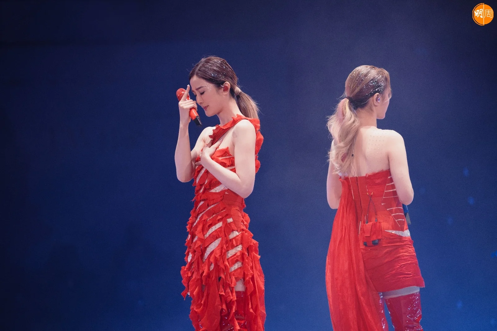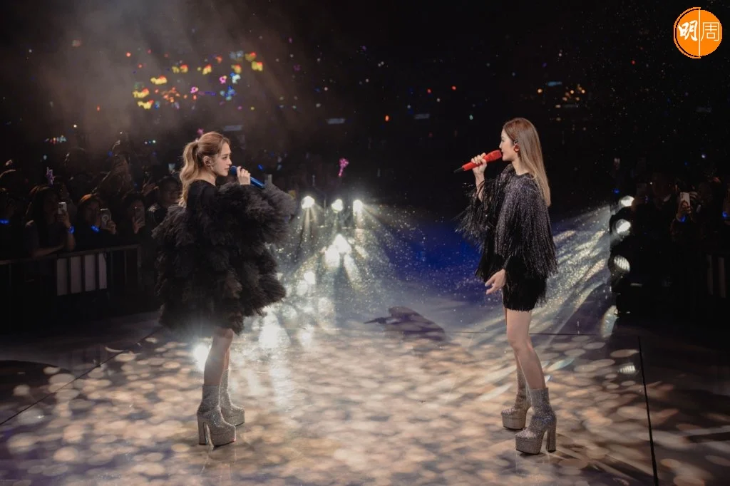 Twins《SPIRIT》2024演唱會昨晚(26日)來到第五場,剛巧是鍾欣潼(阿嬌)農曆生日,萬人再次大合唱中文版《生日歌》向她祝賀;當唱到《相愛22年》前,兩人深情對話部分,更是一晚比一晚感人,兩人邊唱邊哭,蔡卓妍(阿Sa)邊唱邊深呼吸落淚,阿嬌則進入缺堤狀態,哭到淚流滿面,而現場不少歌迷也跟着她們邊唱邊落淚。