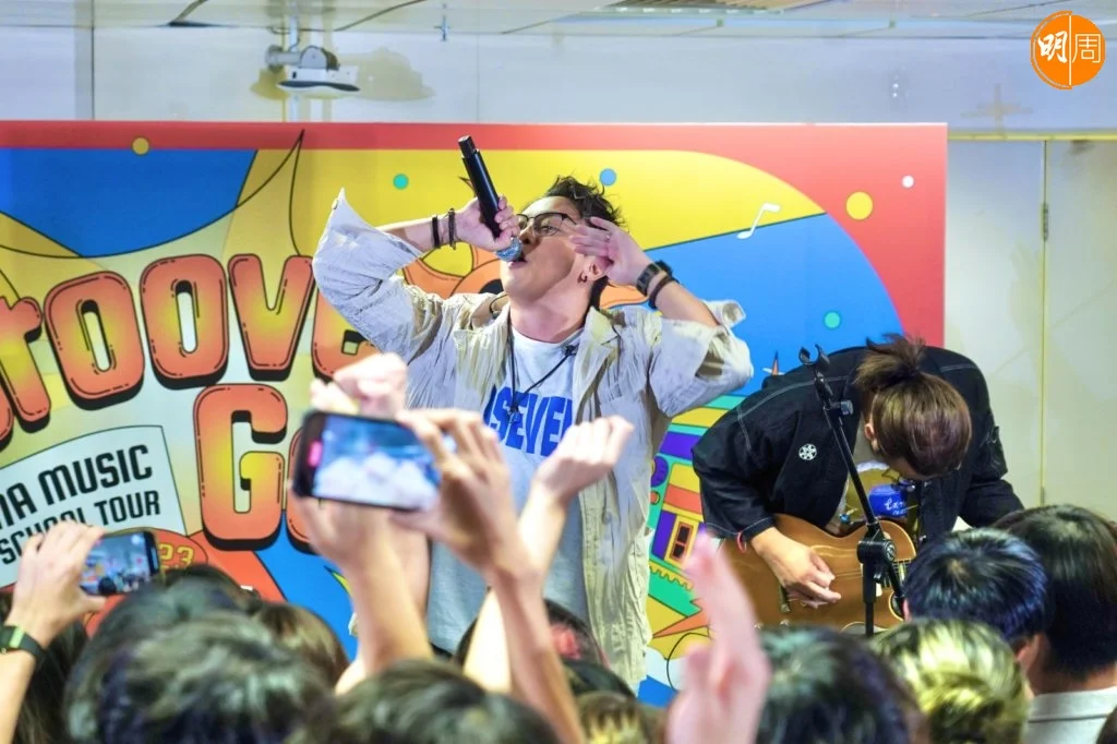 而Cloud就唱出《無以名狀的痛》以及《自發性神經反應》。兩位不時走到台邊與學生握手,全場High爆尖叫聲四起。