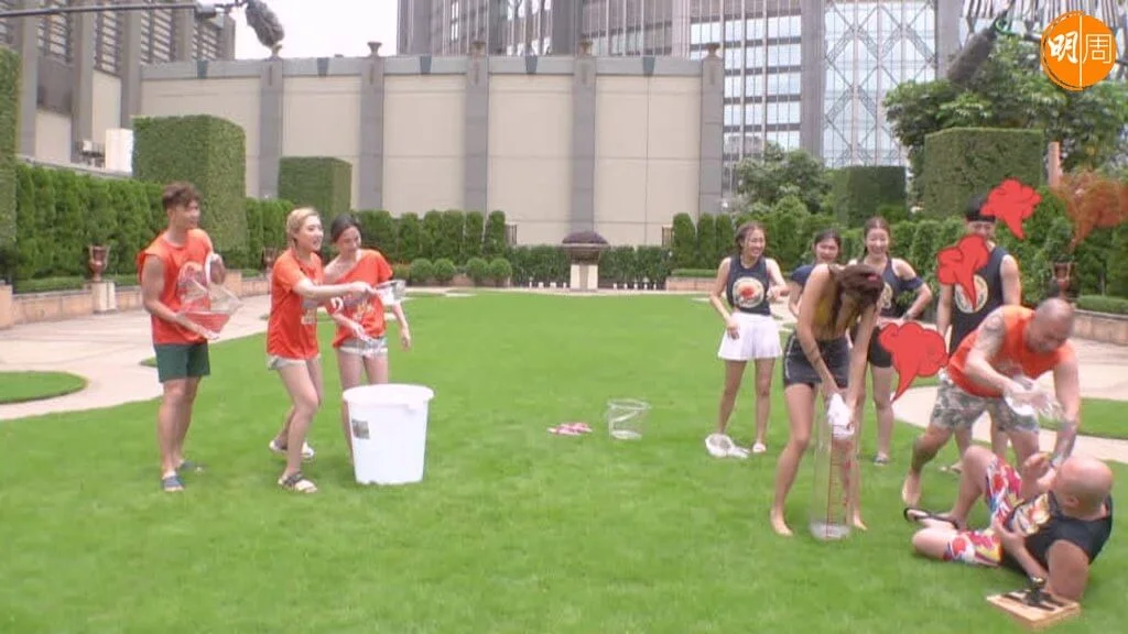 「吸濕大作戰」則是全晚焦點所在,玩法是各隊派出一位隊員着上t-shirt,其他隊員向她瘋狂潑水,之後該隊員會脫去T-shirt扭出水份,扭出較多水的一隊勝出。有料之人思霆和陳婉衡分別出戰做「吸水寶寶」,其間陳婉衡不斷濕身除衫無限Loop,兼出盡力狂扭T-shirt,十分落力,以吊帶比堅尼上陣的思霆則歎慢版,但由於畫面唯美,Bob爭住要霸靚位一睹思霆風姿,睇唔過眼的金剛即向Bob潑水謂:「你有老婆小朋友㗎!」場面搞笑。