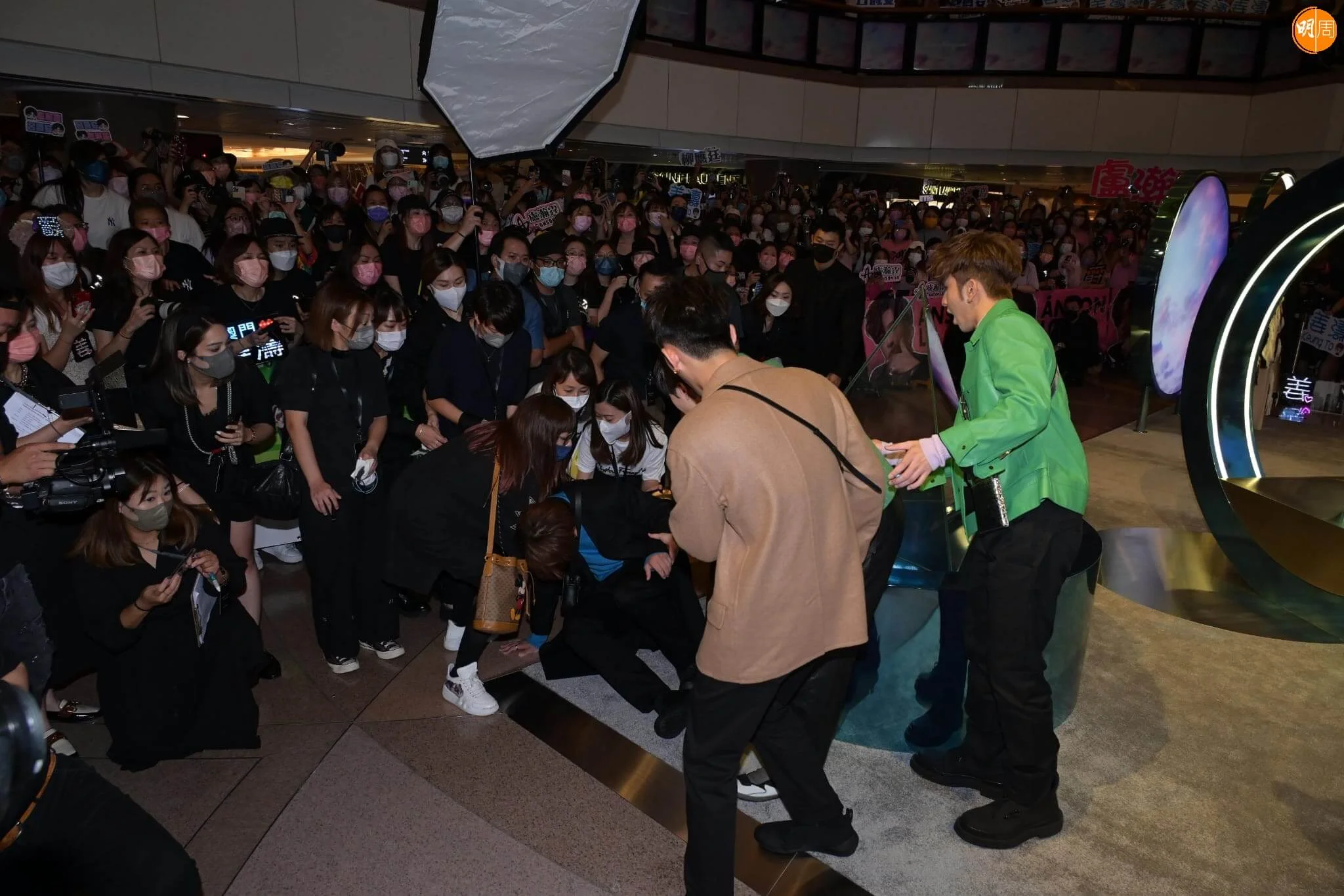 人氣男團MIRROR成員姜濤、盧瀚霆(AnsonLo)、呂爵安(Edan)、柳應廷(Jer),今日(14/09)現身尖沙咀出席Salvatore Ferragamo活動,期間姜濤體力不支暈倒,需要工作人員攙扶離開,活動隨即結束。Anson Lo、Edan、Jer之後再次現身,向前來撐場的粉絲合十致謝。