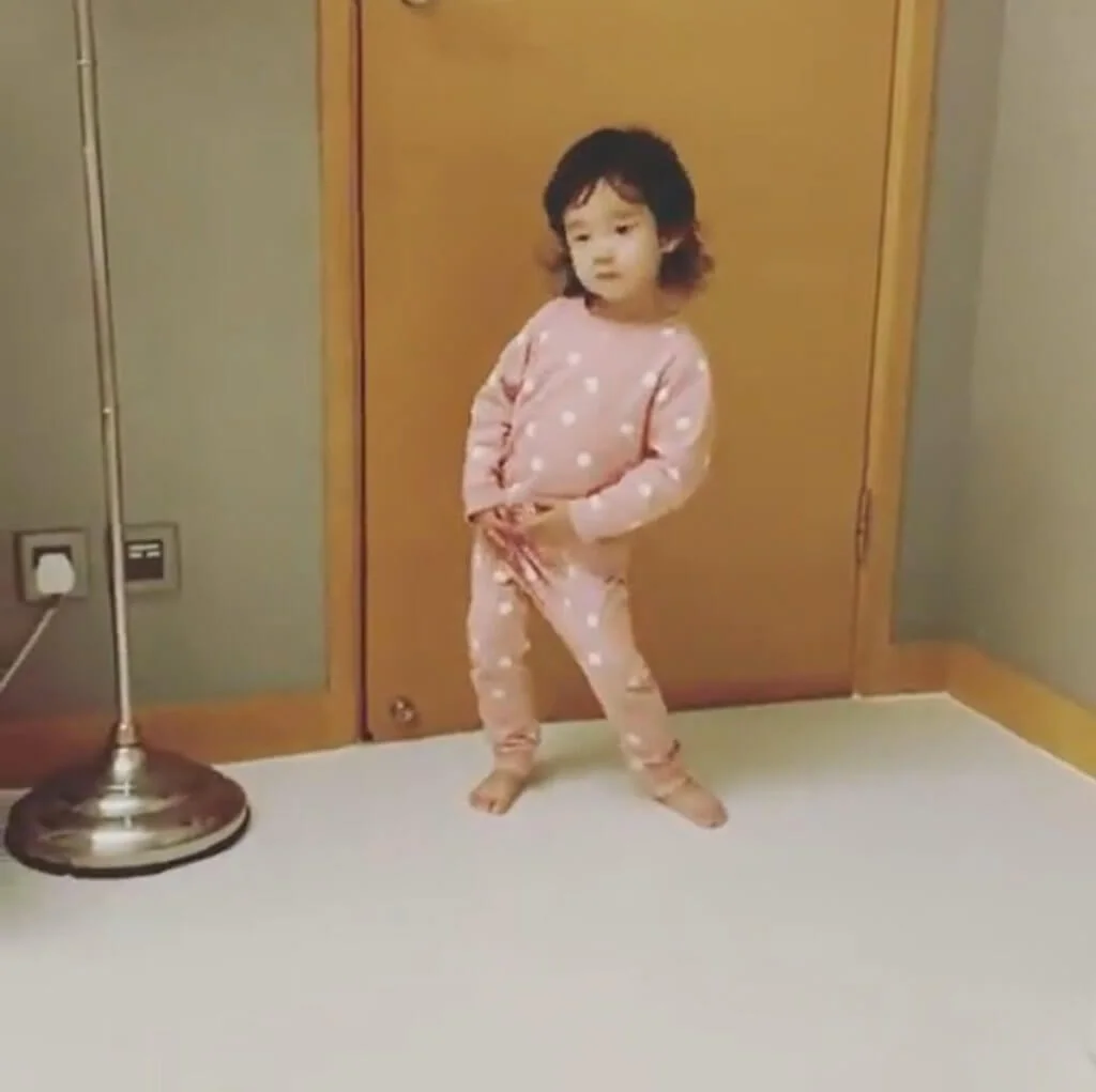張靖吃着朱古力,開心得跳舞,完全沒有被爸爸作弄而生氣,反而逗爸爸開心,果然是一個快樂小女孩。