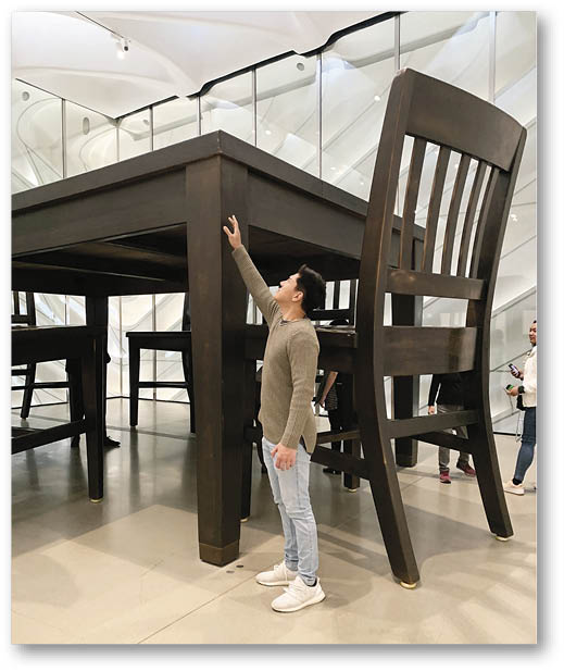 「很多國家都有博物館,但很少免費入場,這裏只要上網預約即可,當我去完之後,覺得館內的展品都很特別,看完每個展品的簡介,其實會啟發你很多想像及思維,我站在那張餐枱及凳前,突然變成小矮人一樣。」