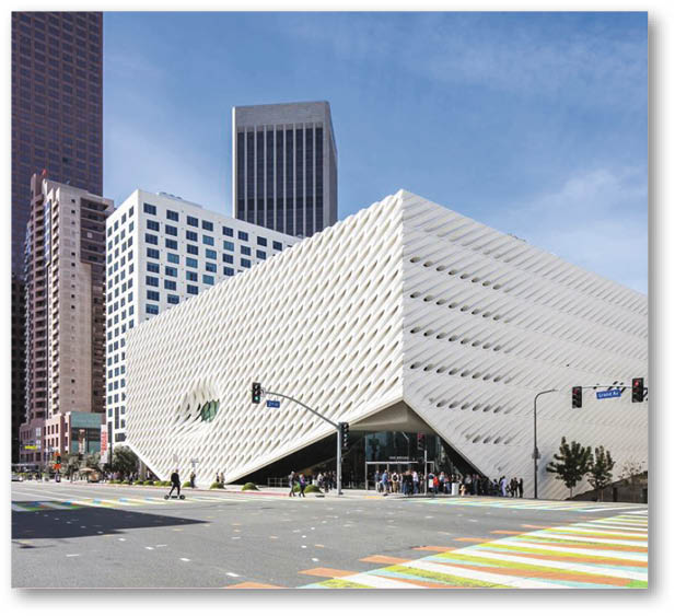 當代藝術博物館The Broad位於在洛杉磯市中心。該博物館以慈善家Eli和Edythe Broad命名,耗資一億四千萬美元建築;館內一樓和三樓的畫廊展示Broad系列,其中包括大約二千幅藝術品。