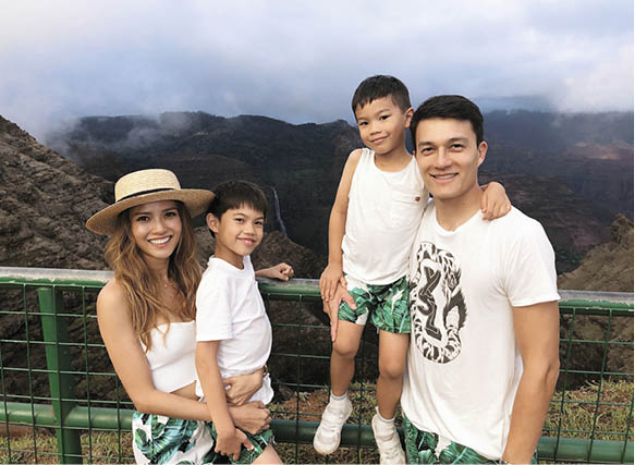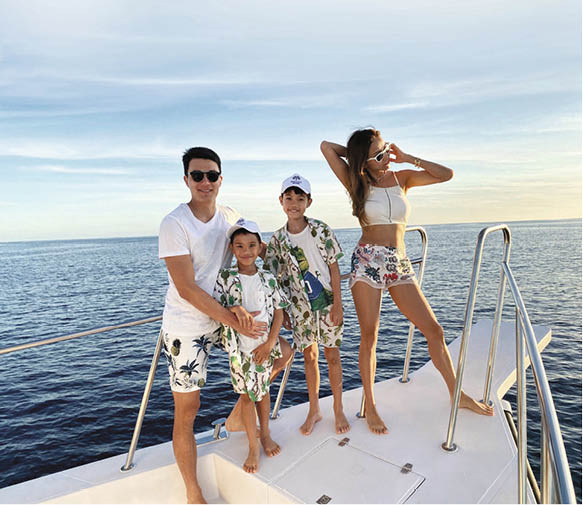 因為兒子小時候出現皮膚敏感,令Rosanne開始研發有機護膚品,更創立有機護膚母嬰品牌Rozy Baby,直至這次新冠肺炎疫情,竟令品牌提早推出市面,Rosanne說:「這個品牌足足用了八年時間研發,兩個兒子小時候皮膚敏感,看到他們又痕又痛很心痛,激發了我上堂自己研發,今次疫情下,新加坡政府需要洗手液,我便馬上製造二百五十萬枝供給政府,慶幸牌子突然推出都幫到別人。」這陣子,Rosanne一家亦響應留家抗疫,與兒子一起online shopping,「兩個兒子的性格都很隨和,通常上網一起揀,男仔最緊要是穿上後能夠郁動、褲子容易穿上和脫下,他們都喜歡藍色,我們一家的親子裝通常是同一顏色,視覺好重要,同小朋友又親密些,親子裝的確會令家人關係更加密切。」一家四口,最重視親子裝的竟然是老公,Rosanne說:「最配合是老公,每次他都要我買埋男裝,他很喜歡和兒子穿上一樣的款式,覺得特別close。」