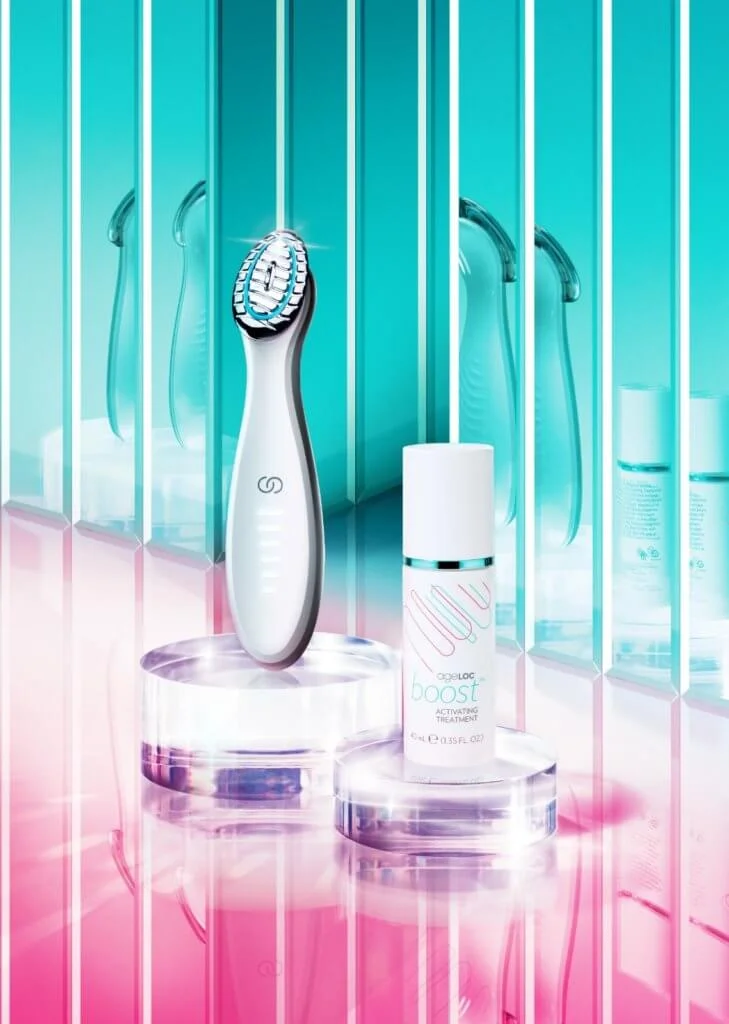 ageLOC Boost提供每2分鐘約1000次變向脈衝微電流,提升皮膚亮澤、飽滿和彈力,有助在節日派對和重要場合上妝前急救,令妝容更貼服持久。配合使用光感瞬活精華,瞬活彈潤配方含海百合、脂溶性維他命C及B3,有助亮澤、均勻膚色,令膚質水潤柔軟。