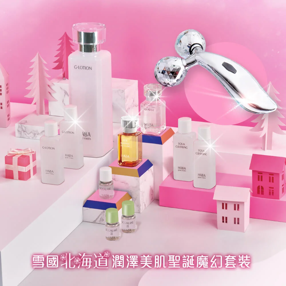 要在冬天對抗肌膚乾燥,先要為肌膚做好保濕,HABA 在聖誕推出北海道潤澤美肌套裝,當中包括人氣皇牌產品:G露水—蘊含千島箬竹水,能高效保濕,滲透角質層極速補水;鯊烯精華卸妝油輕柔帶走污垢,潔淨肌膚;鯊烯美肌清油配以鉑金塑顏V面按摩儀,轉出V面輪廓,在佳節keep住飽滿水嫩。