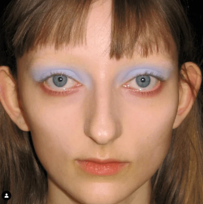 Vivetta一玩眼晴上的Upside Down,將閃粉眼影反常地掃在下眼簾的位置,強調整體動感與活力。