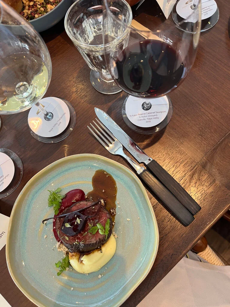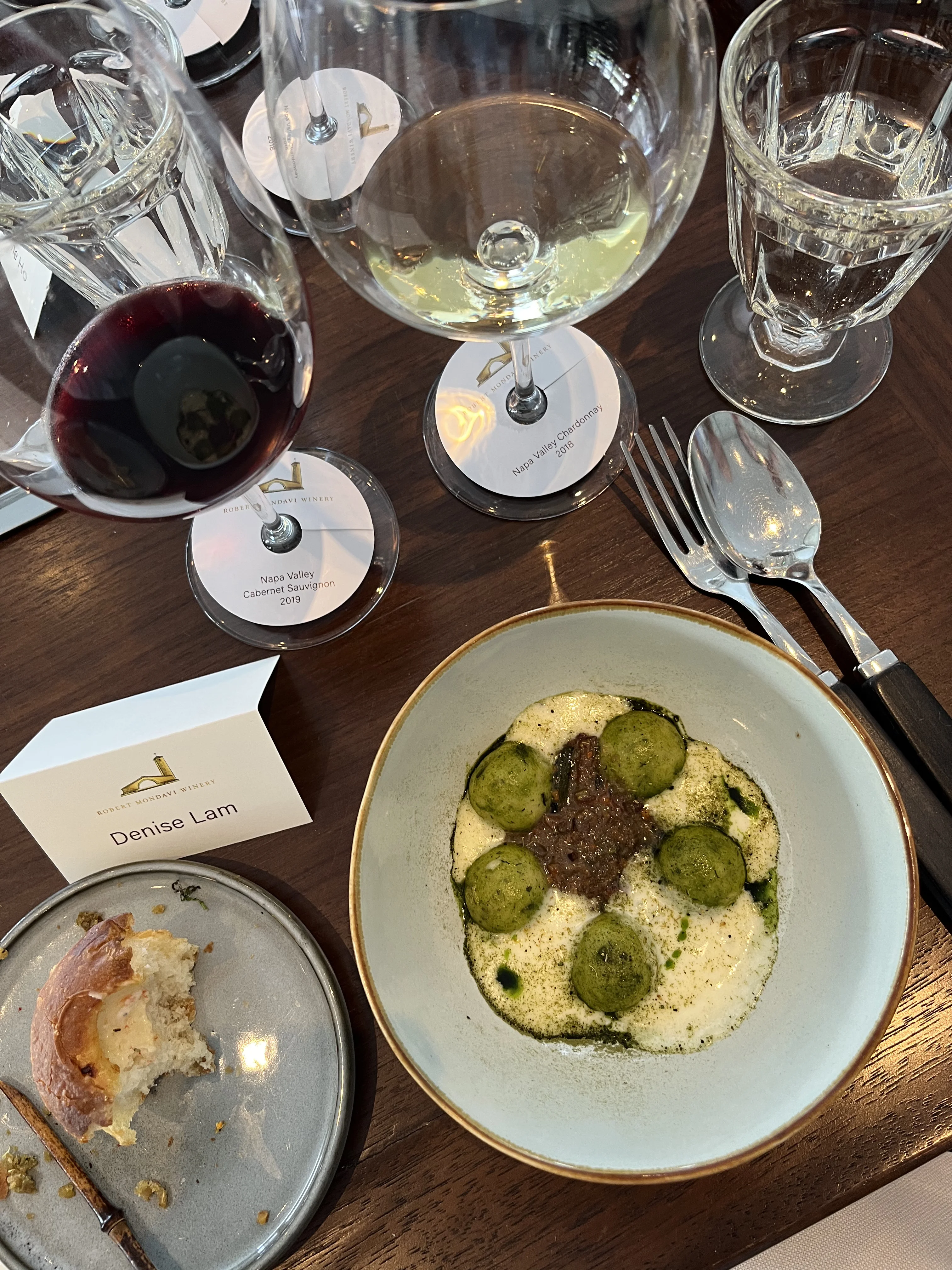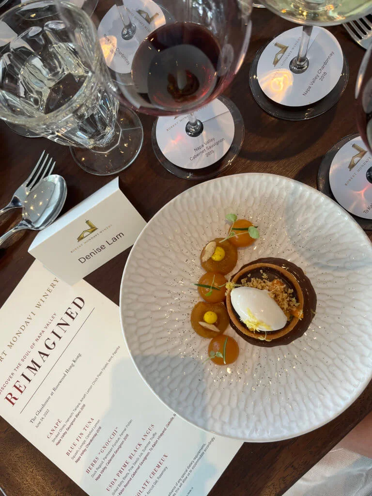 CANAPE、BLUE FIN TUNA vs 2018、2019 Napa Valley Sauvignon Blanc; HERBS GNOCCHI vs 2019 Napa Valley Cabernet Sauvignon。