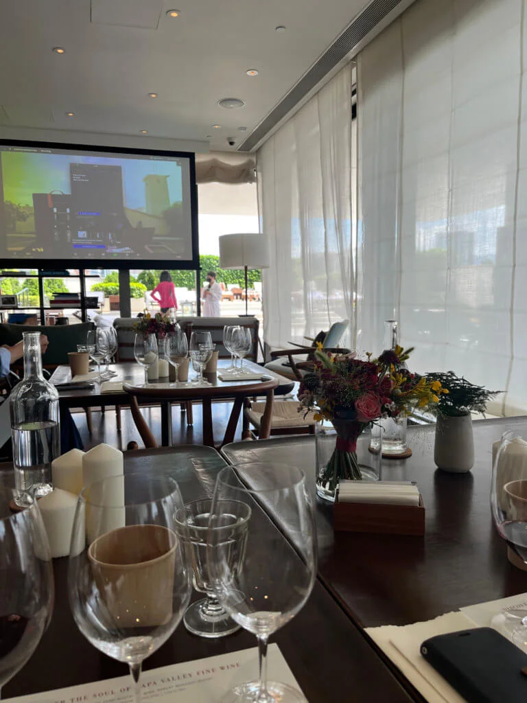 酒莊非常細心安排 Tasting 在 Rosewood Pool Side 陽光普照下進行,承傳 palm trees, blue skies, cold drinks 的 Californian style 。