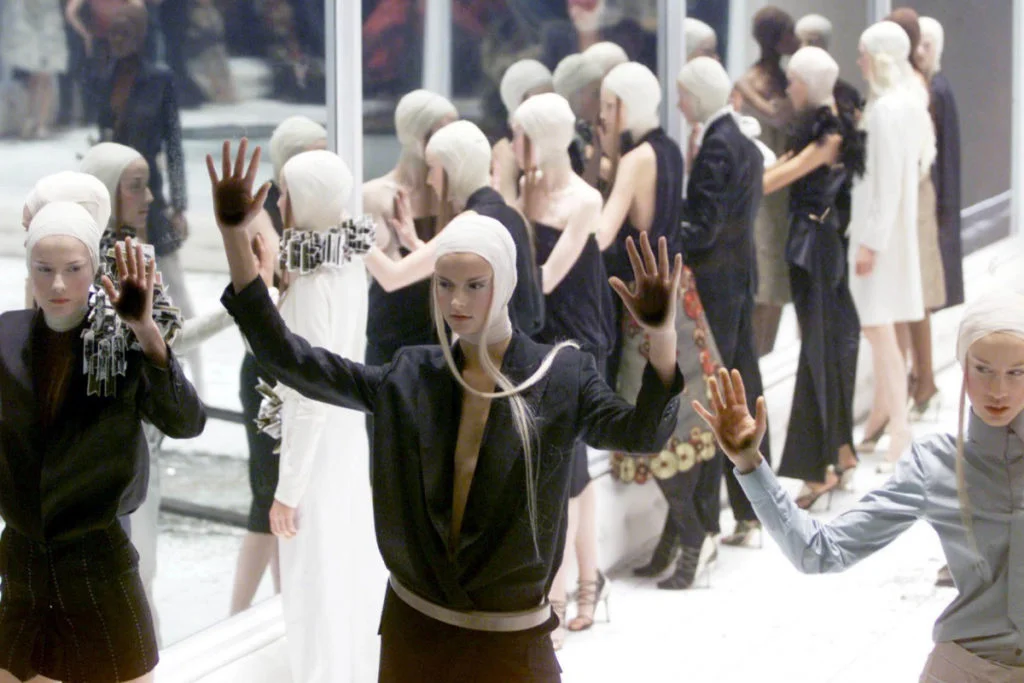 訂製服大師 Paul Poiret在一九一一年舉辦的《一千零二夜》變裝舞會,說來也是天馬行空,他的太太穿了一件金色鳥籠裝盛裝出席,極盡奢華,也要求參與者穿上最精美的衣服過來,最終催生了時裝展的誕生,這種絞盡腦汁的吸睛策略,又豈止是現今的產物?台灣Facebook及Instagram專頁「時尚編輯的真心話」背後的「時編」也認為,誇張的表達手法並非近年才出現的橋段:「我覺得有分等級的演化,早幾年是像Alexander McQueen的機器手臂向模特兒的裙子噴漆(SS1999)、《Voss》系列模特兒在空間中遊蕩(SS2001)、Kate Moss投影在半空中(FW2006)、Balenciaga的風雪天場景(FW2002)、泥漿水窪場景(SS2023)、Moschino的益智估價節目(FW2019)、戲劇性燒裙子(FW2019)、Gucci的手拎人頭(FW2018)、走秀途中突然停電(SS2020),甚至Chanel的場景變化也都是話題。不過這些秀上的特殊安排、效果,還是看得出來是在為秀和設計本身服務。要說近幾年Coperni、AVAVAV的這種模式和以往的差異,應該是動作更大,給人噱頭反客為主的感覺。」