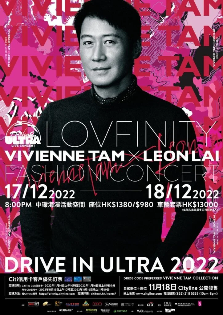 這次的「Drive In Ultra: Lovfinity Vivienne Tam x Leon Lai Fashion Concert」將音樂和時裝元素二合為一,聆聽天王黎明悅耳的歌聲的同時,更可欣賞國際時裝設計師 Vivienne Tam的2023春夏系列時裝秀和演唱會專屬設計的晚裝系列,給予台下觀眾視覺和聽覺的雙重享受!