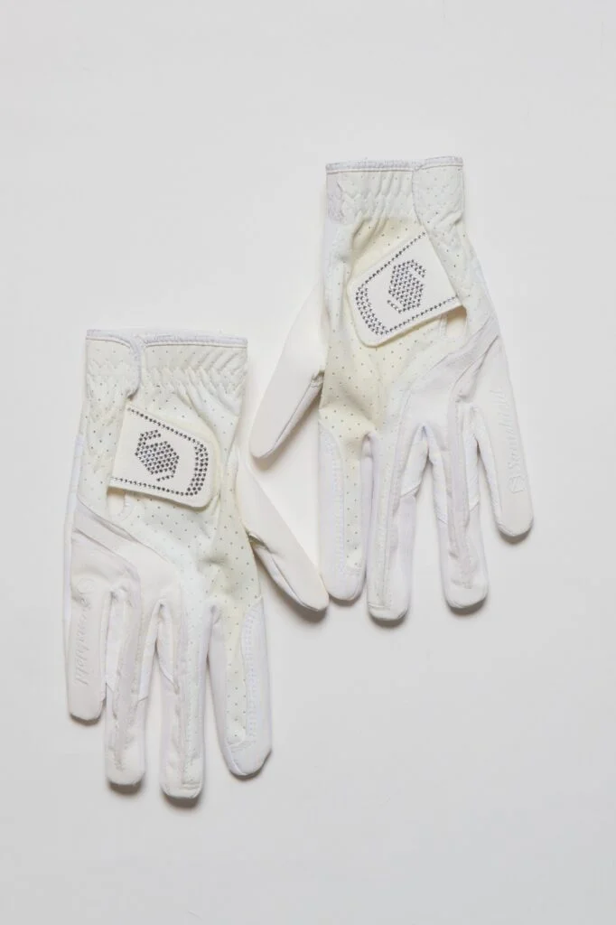 手套核心作用是增強韁繩握持感,增強控制馬匹的能力,防止手部磨損。手套有分不同材質,透氣的微孔網眼布料更適合夏天使用,亦設有皮質物料,可以因應自己的需要選擇。