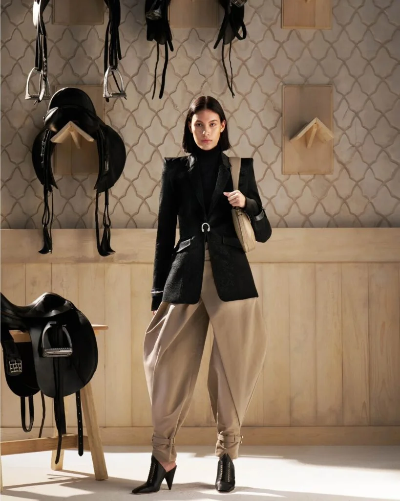 近年各大時裝品牌都迷上了馬術元素,雖然沒有實際馬具及馬術服的功用,但抽取了其設計語言,把馬鞍的柔潤弧線及馬具的精巧細節,玩出各種新花樣。讓每個人都能穿出屬於自己的騎士風範,演繹屬於當代的馬術美學。