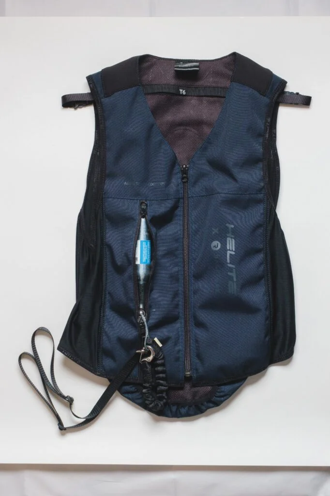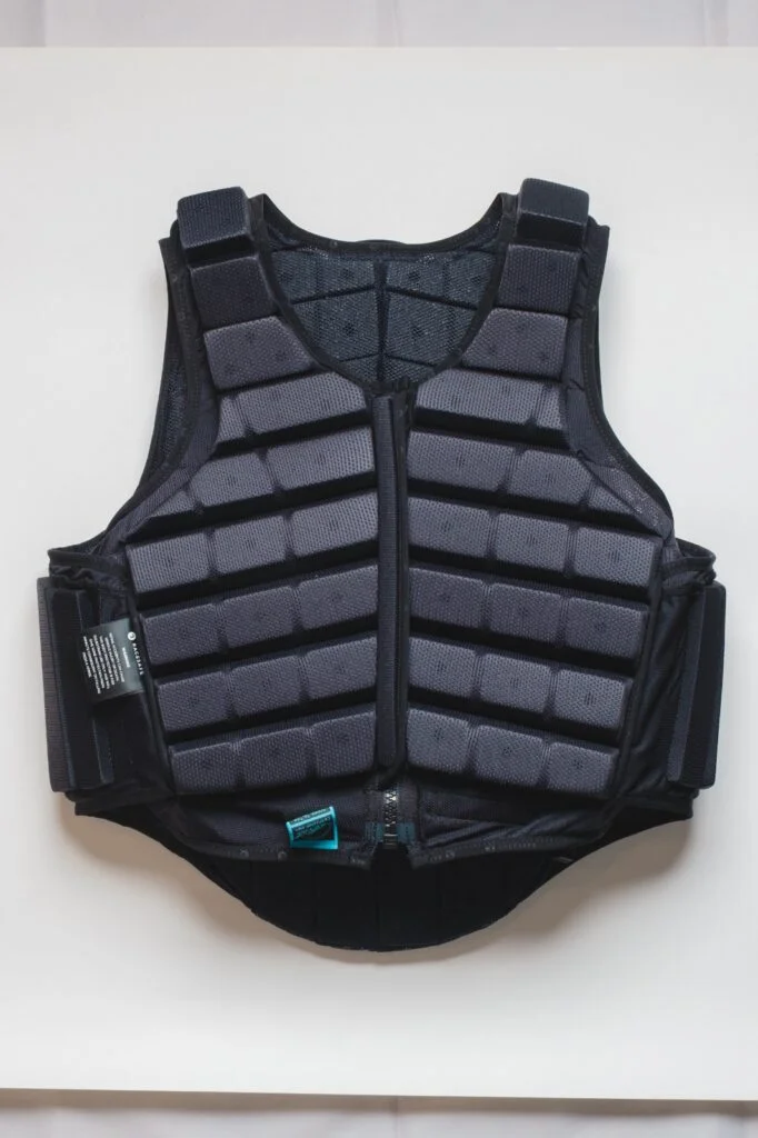 安全背心的核心功能是保護騎手軀幹關鍵部位,包括脊椎、胸口、鎖骨及肋骨。傳統款採用厚實的防護面料(如尼龍加防護墊),通過分區緩衝減少摔馬時的衝擊力,降低骨折、內臟受傷的風險。新一代氣囊式護甲則通過感應裝置,在摔馬瞬間自動充氣,重量更輕、防護面積更大。