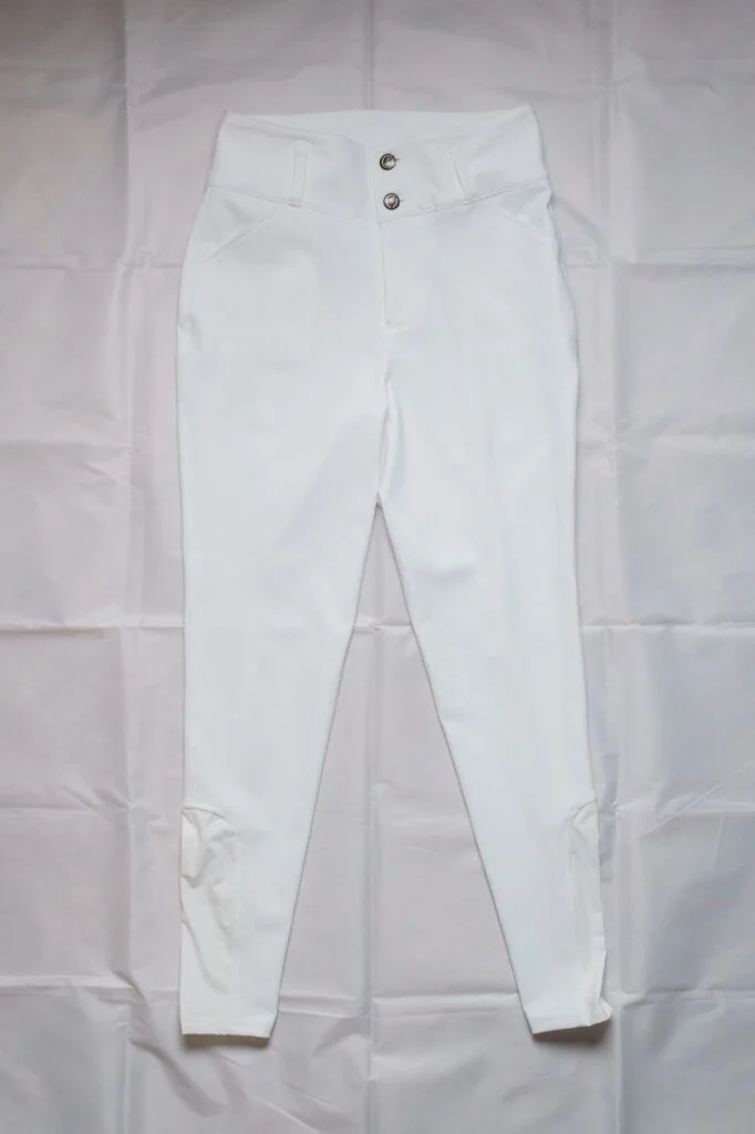 馬術上衣及馬褲有許多不同顏色可以選擇,但正式比賽中則需穿著白色,搭配深色禮服外套,彰顯競技禮儀,日常訓練則可選擇任何顏色。馬褲是騎乘的核心單品,褲形貼合腿部,內側縫製了防滑材質,如矽膠,增強騎手與馬鞍的摩擦力,避免騎乘時身體滑動。