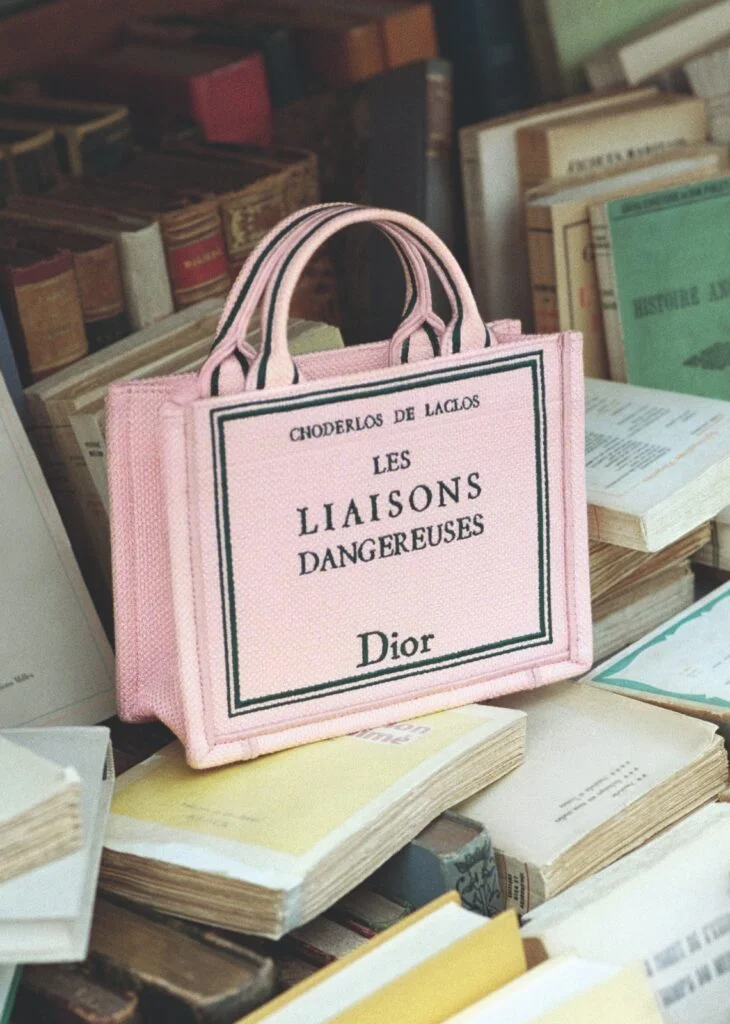 此外,還有一系列以經典文學作品為主題的款式,通過現代的方式演繹:圖案涵蓋Pierre Choderlos de Laclos著作的《Les Liaisons Dangereuses》、Gustave Flaubert的《Madame Bovary》、Françoise Sagan的《Bonjour Tristesse》等,每一款手袋都在向經典文學致敬,同時增添了現代的觸感。