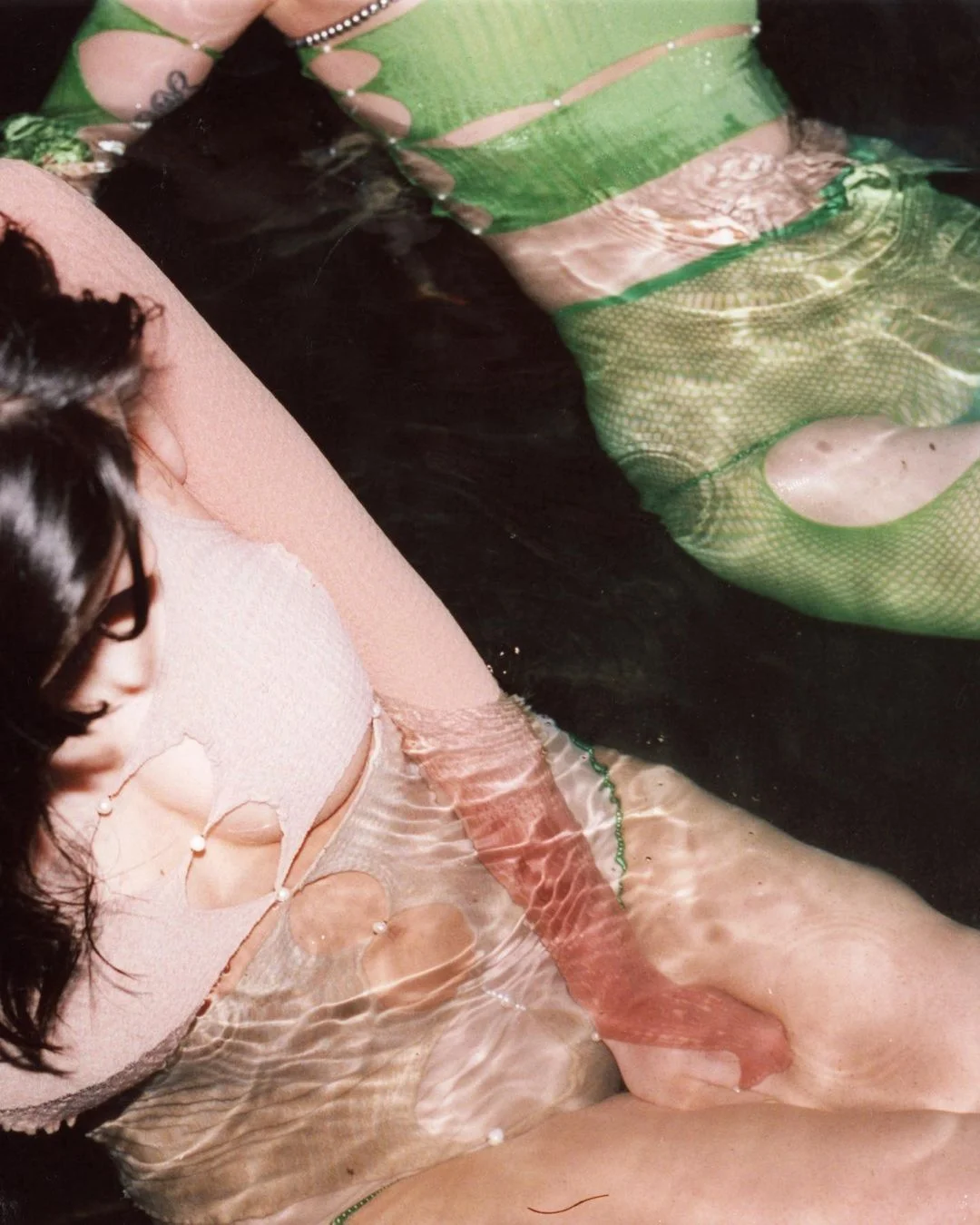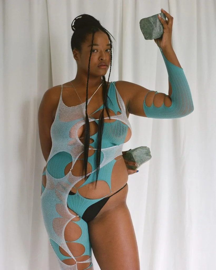 Rui Zhou 出生在中國中部的一個小城市,四周群山環繞,樹木茂盛。這種環境影響了她對禪宗佛教和日本侘寂美學的興趣。品牌的針織服裝以內衣和運動裝之間的詩意和戲劇性融合而聞名,針織服裝在身體上伸展,就像漣漪的油漆飛濺,而靈感來自日本設計師兼 Comme des Garçons 創始人川久保玲(Rei Kawakubo) 的解構撕裂服裝。