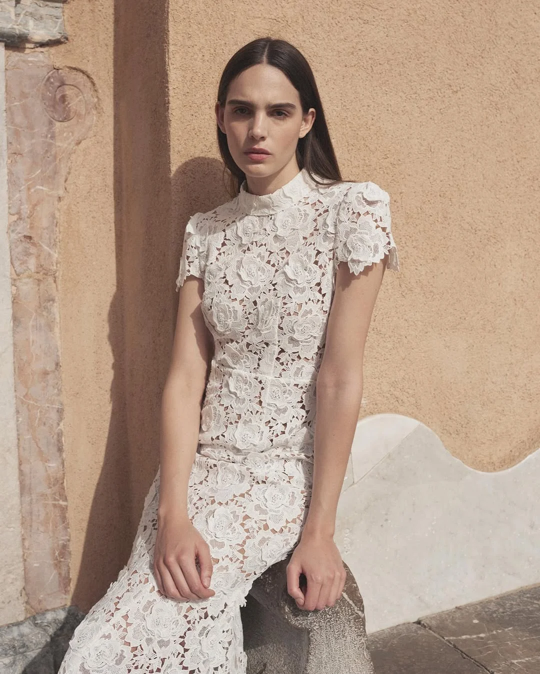來自倫敦的Self-Portrait融入了實用與優雅的完美平衡,凱特王妃和Blackpink成員Jisoo都是其忠實粉絲,Jisoo後來更成為品牌代言人。Self-Portrait的婚紗以高性價比聞名,設計師Han Chong以精緻的禮服設計贏得了全球女士的青睞,他的作品中藏有一種少女般的心境,讓優雅與活潑並存,在日常穿搭中也不顯得過於隆重。這些設計在優雅的外表下藏有小巧的驚喜細節,完美結合了成熟女人的端莊與少女的俏皮,為新娘的整體造型增添了一份輕盈的魅力。