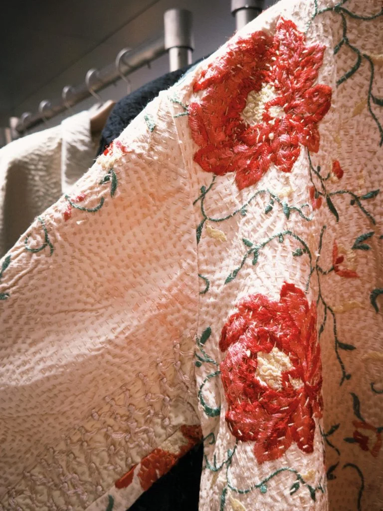 BY WALID的服飾沒有流水線的生產模式,每一件都是孤品,每一塊布料都有它的前世今生。品牌的核心,是使用真正的古董布料—不是復古風格的仿品,而是實打實百年以上歷史的紡織品。從十九世紀甚至更早的亞麻布,到中國清朝的刺繡、法國的鉤針蕾絲、威尼斯的手工花邊,每一種材料都曾見證時間的流動。