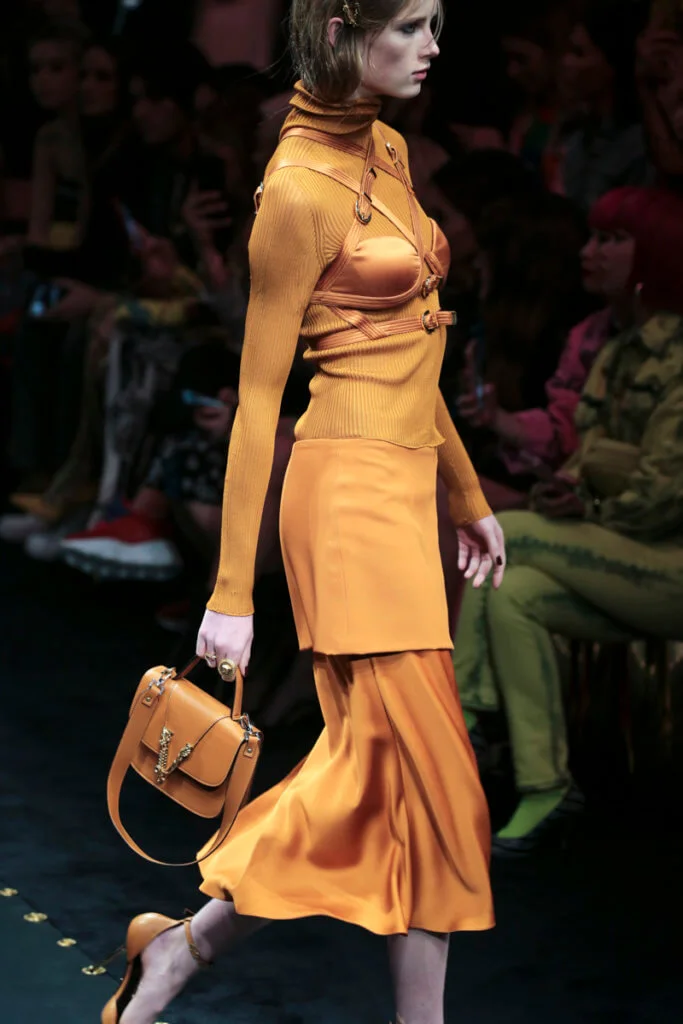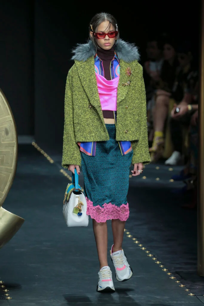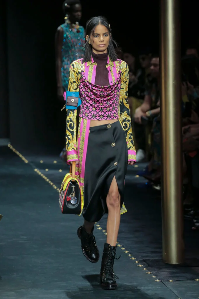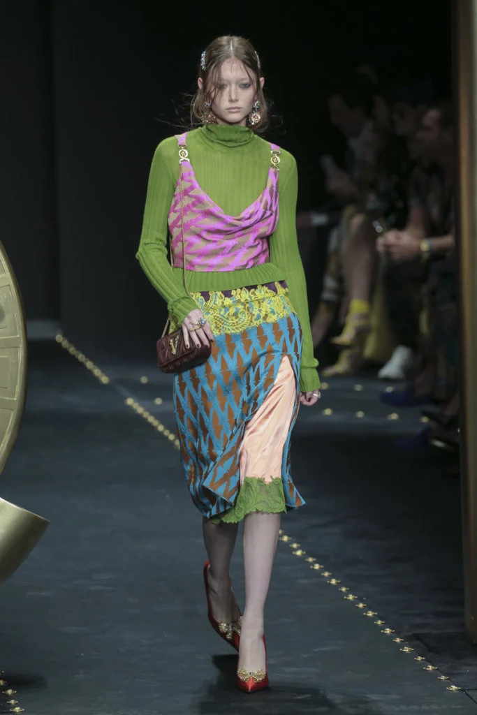 是沒想過grunge會出現在Versace的字典中,品牌所呈現的女人形象從來是性感又華麗的尤物,跟grunge似乎有點距離,就連在grunge大行其道的90年代,品牌都未曾以此為題,偏偏在今時今日90年代回歸時裝界,Versace才做起grunge來。有說因品牌被Capri Holdings Ltd收購後,希望吸引年輕顧客,而正好現在年輕人崇尚90年代潮流,今個系列以grunge作主題是理所當然。