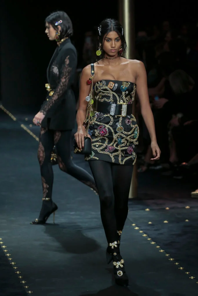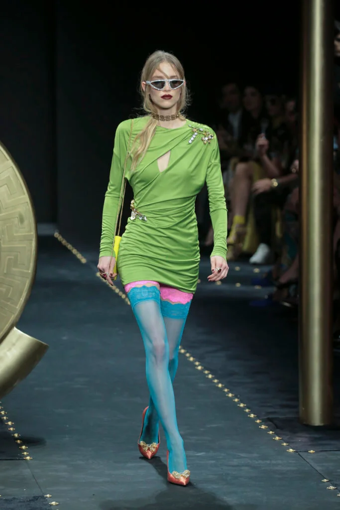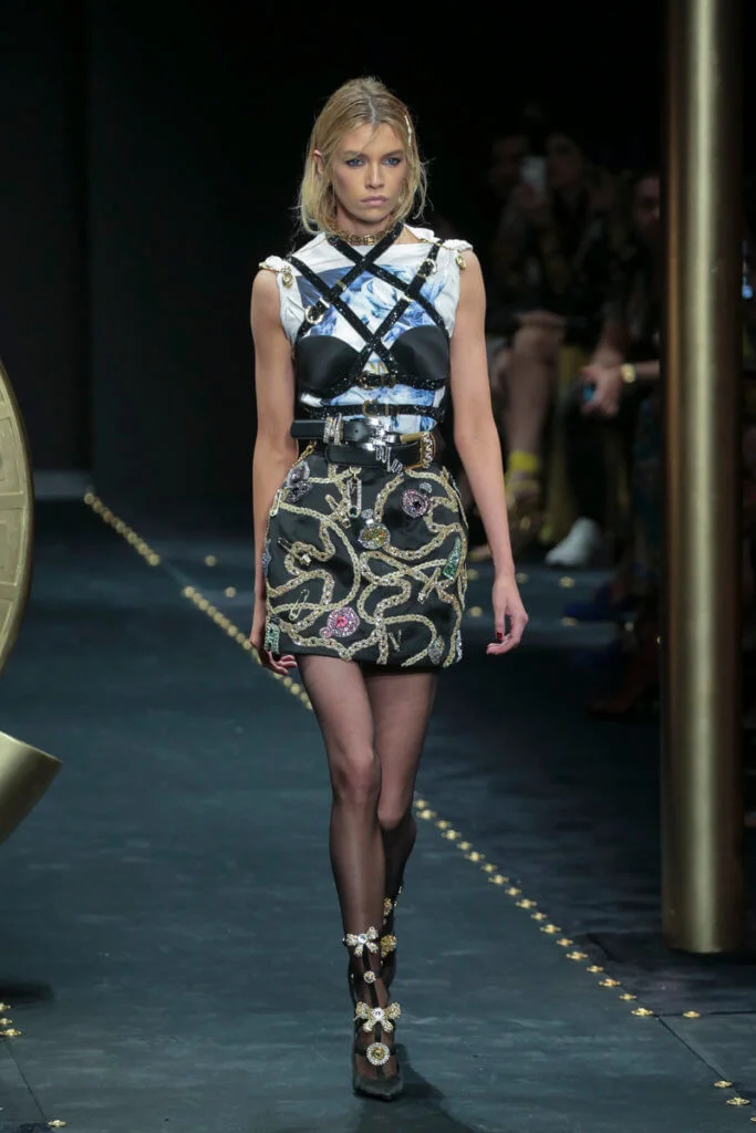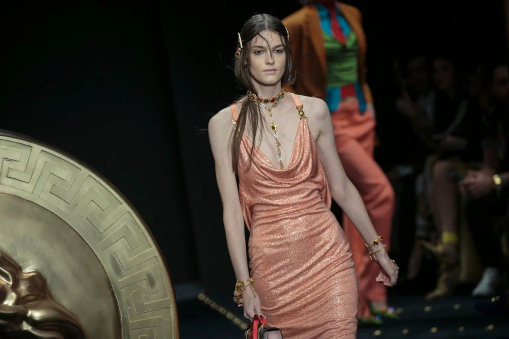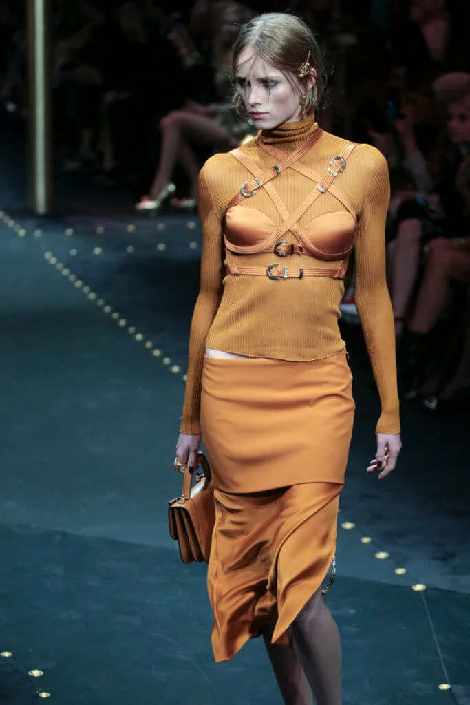 是沒想過grunge會出現在Versace的字典中,品牌所呈現的女人形象從來是性感又華麗的尤物,跟grunge似乎有點距離,就連在grunge大行其道的90年代,品牌都未曾以此為題,偏偏在今時今日90年代回歸時裝界,Versace才做起grunge來。有說因品牌被Capri Holdings Ltd收購後,希望吸引年輕顧客,而正好現在年輕人崇尚90年代潮流,今個系列以grunge作主題是理所當然。