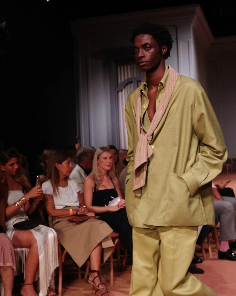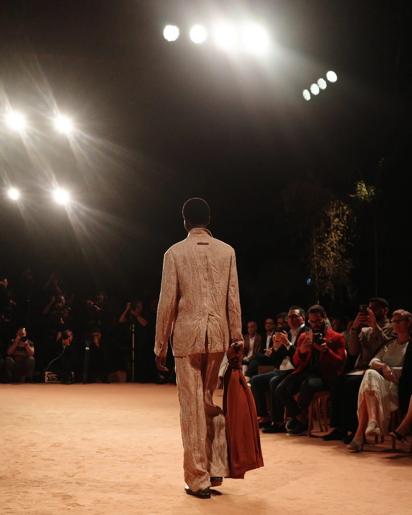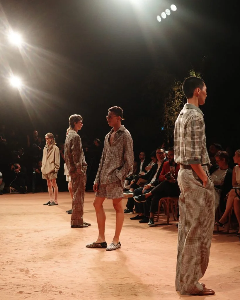 品牌的2026夏季時裝大秀選址杜拜歌劇院(Dubai Opera),秀場搭建成一個有綠洲的沙漠,矗立一片阿聯酋國樹牧豆樹(Ghaf tree)樹林;牧豆樹耐旱,在惡劣的沙漠環境中也能生存,呼應了當年品牌創始人植樹造林,改造土地的善舉,也為秀場增添了一份生動意象。
