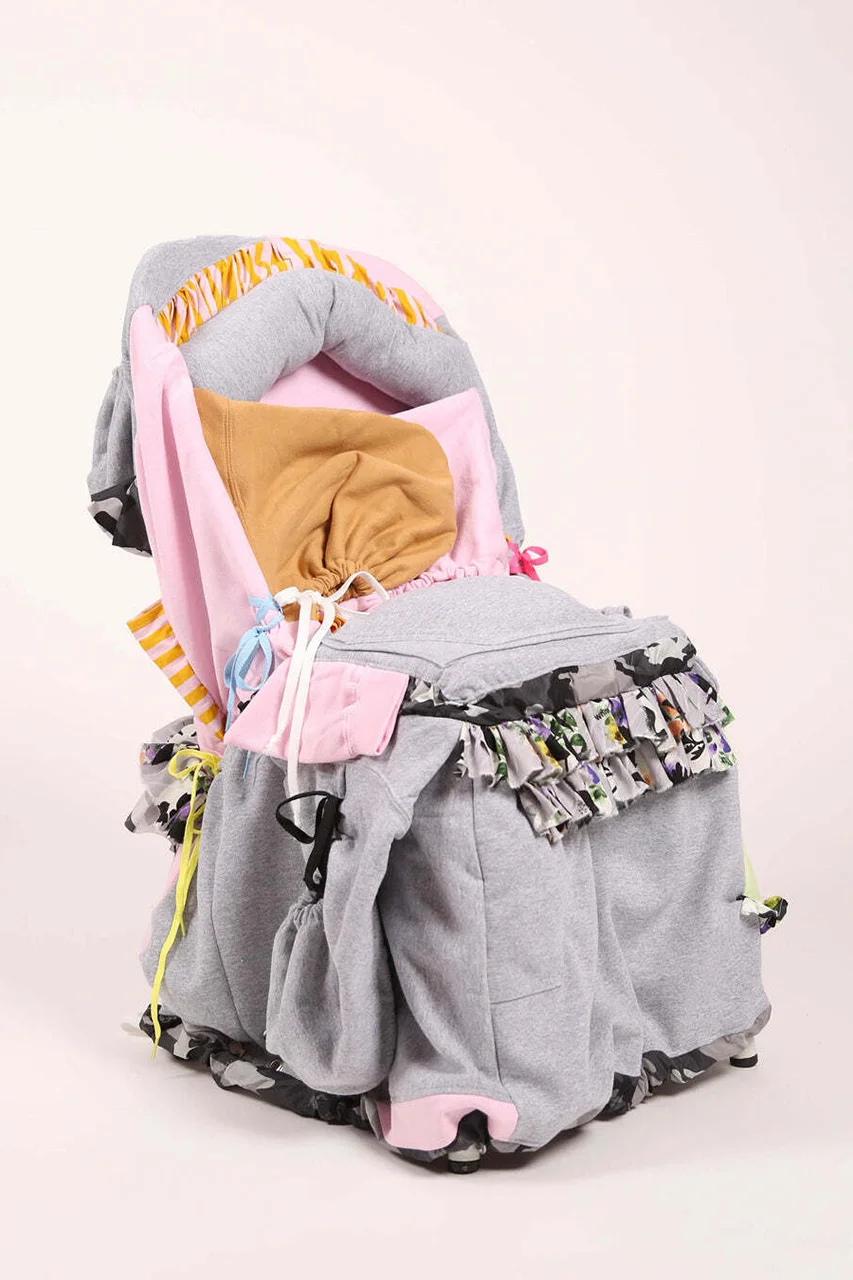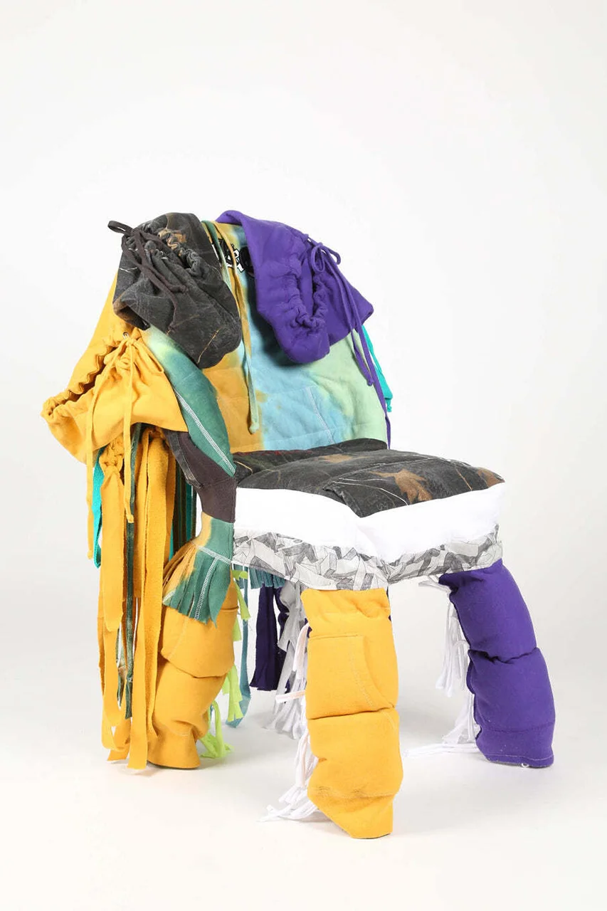Upcycling 把廢棄物料重新設計絕對是一個好方法,服裝設計師 Camella Ehlke 就以其生前好友 Virgil Abloh 贈與 Off-White 舊布料重新裝飾 19 張各具特色的座椅。系列名為《Hey, What’s Up?》,並劃分為六大主題,分別是:「Ladies of Leisure」、「One Love Community」、「The Hoodie Series」、「Pleats On Pleats」、「Flower Power」、「Pocketman」,將來自Eames、Carl Hansen、GUBI 等家飾品牌的座椅重新訂製。
