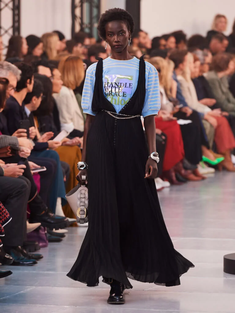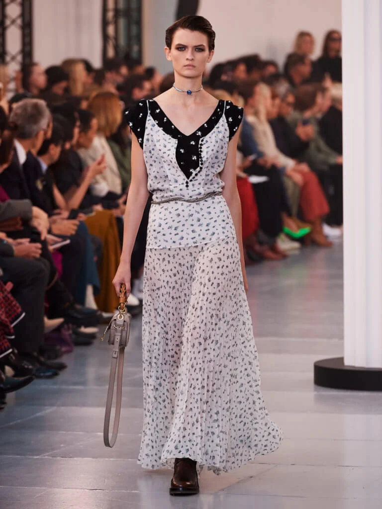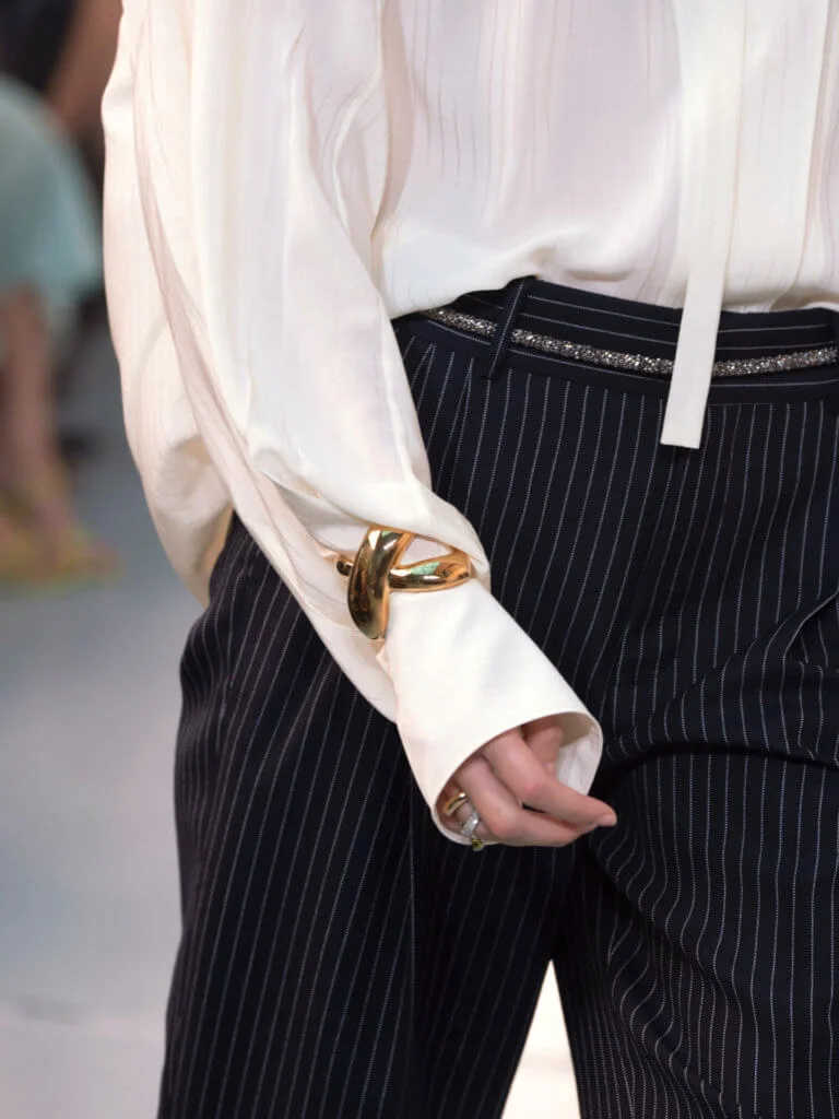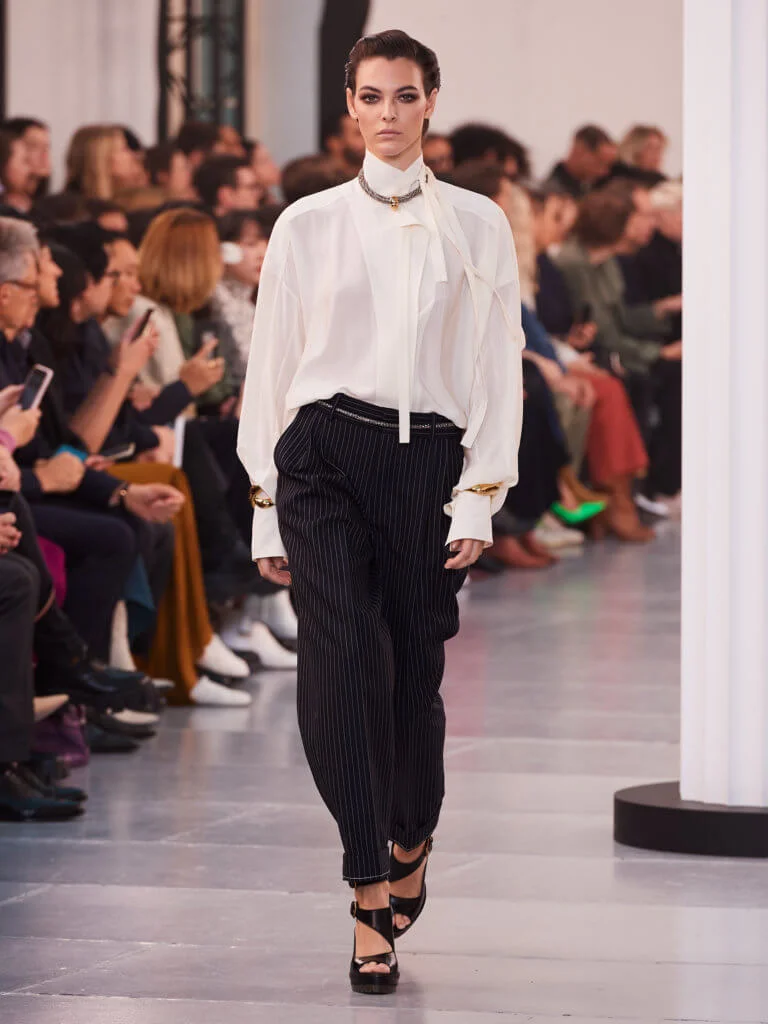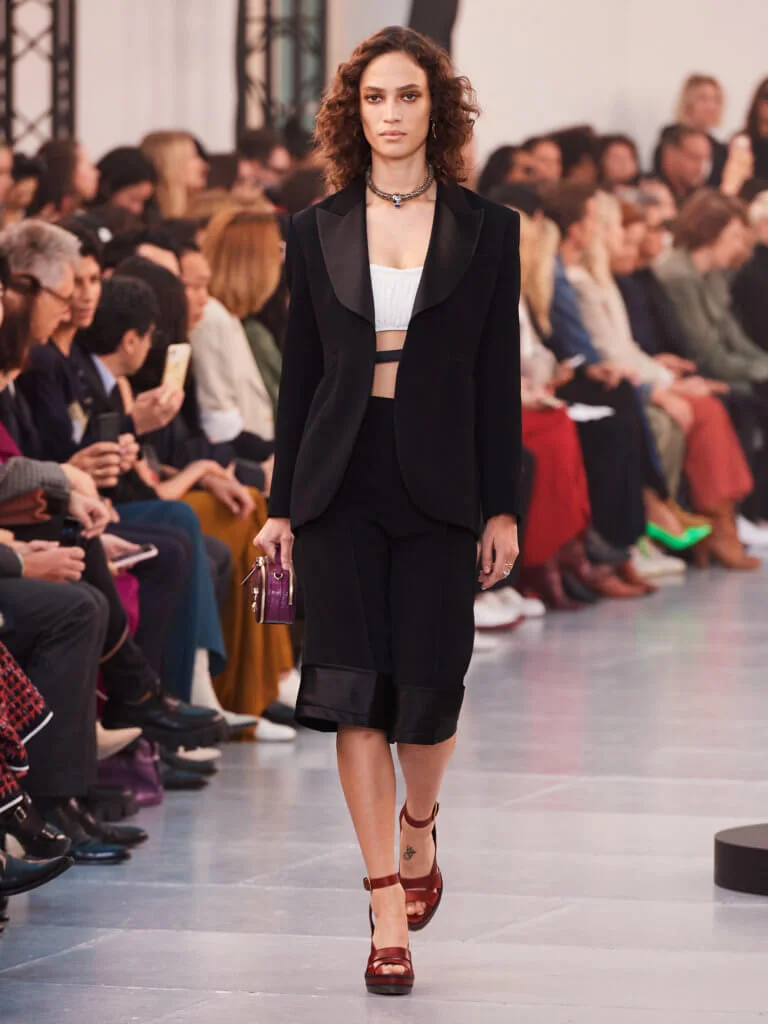 Natacha Ramsay-Levi似乎喜歡在每個系列都嘗試一點新的元素和風格,這次她選擇把重點落在細節之上,放上幼條紋元素,在褲子邊緣露出內裡,還有飄逸的Chloé式襯衫與連衣裙。她把具剛陽味的西裝元素稍微扭一扭,添上女性柔美與嫵媚的氣息,值得大家慢慢細嚼。