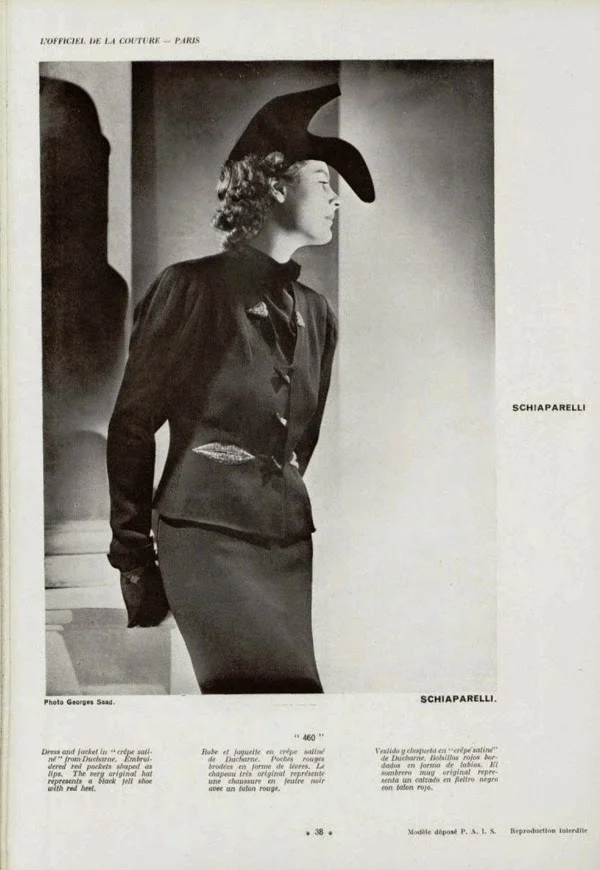 「藝術家」一詞對時裝設計師是把雙面刃,有藝術家的詣藝卻也得藝術家的知音可能是現今時裝設計師不能承受的痛,但說將藝術和時裝連繫的先驅便捨Elsa Schiaparelli其誰。Schiparelli活躍於上世紀2030年代,當時Schiaparelli活躍於藝術界並且以一種超現實主義藝術家如Salvador Dali關係密切。從最經典的龍蝦裙、加上手指甲的皮手套,以高跟鞋作頭飾這些稀奇古怪的設計都出自她手筆。在SchiaparelliCoco chanel相遇之前,法國巴黎從藝術到時裝都是一個華麗光輝的時代,而她與Chanel兩人各自在自己的領域上不斷作出突破,風格迥異的兩人雖不是直接競爭對手,兩人當時在時裝甚至藝術界的注目和重要程度卻不相伯仲。可隨着二次世界大戰以及女生參與運動的風氣越來越盛行,時裝界便變成Coco Chanel的天下。
