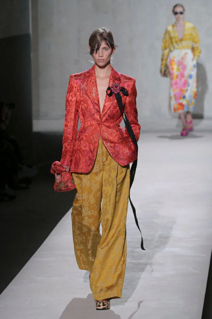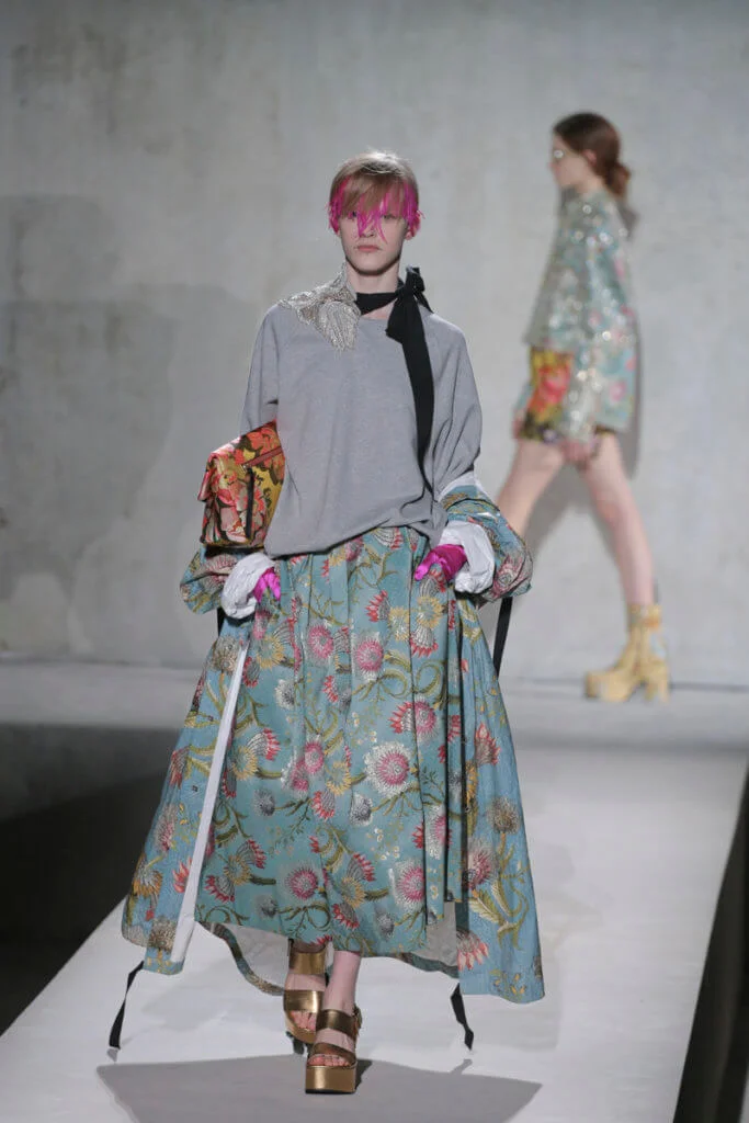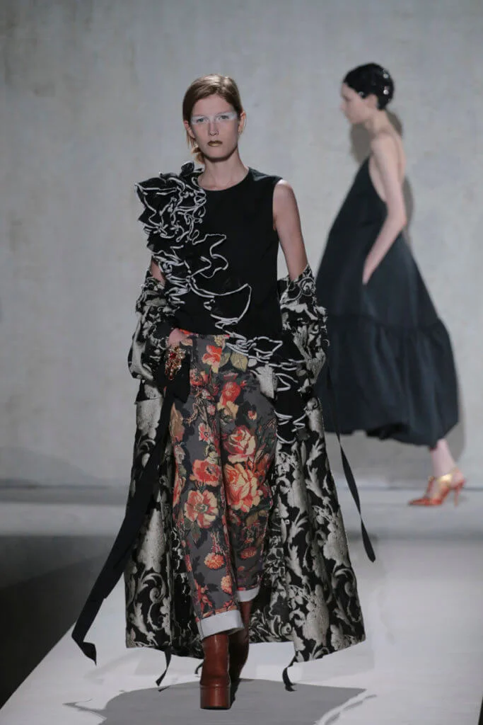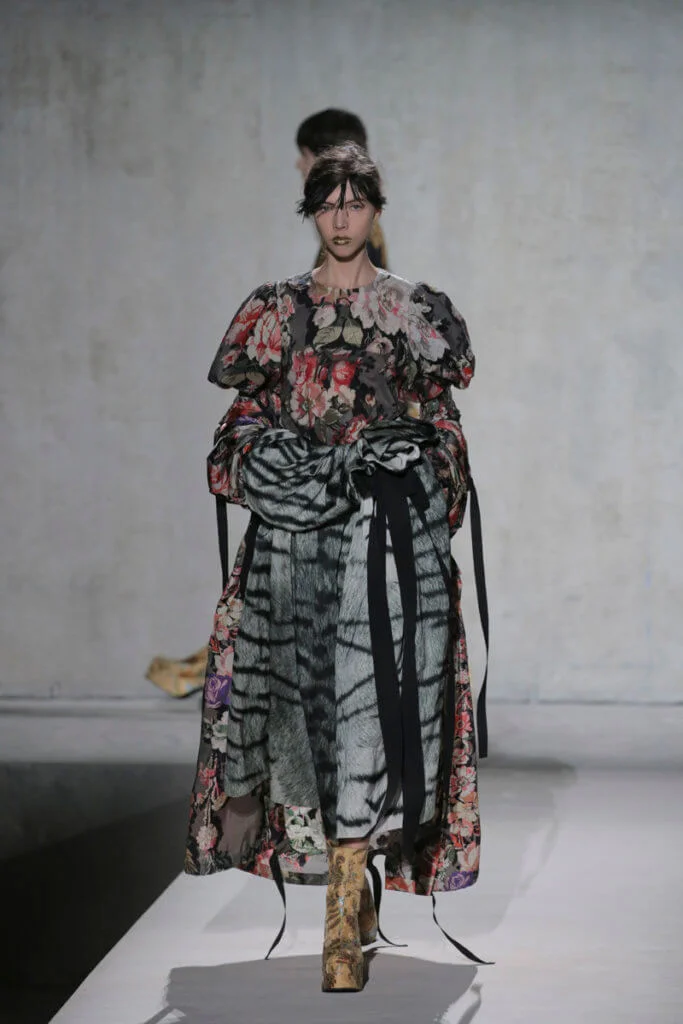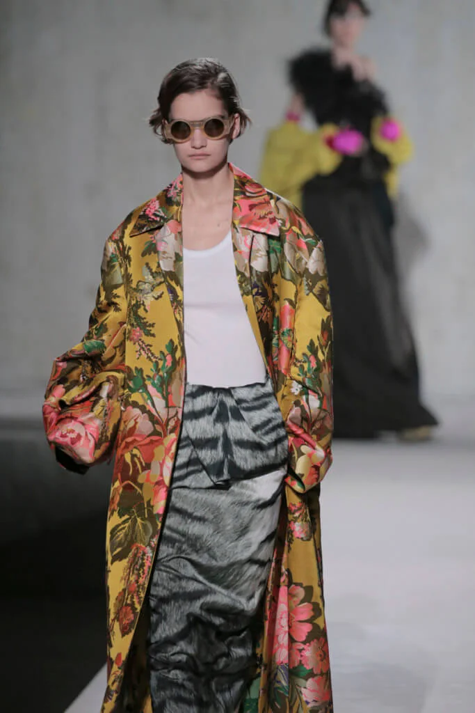 時裝界變幻莫測,但Dries Van Noten今時今日仍然忠於他對花卉、色彩的熱愛,他和Lacroix送上了繁複繽紛的動物紋元素、花卉圖案,配上宮廷式的面料,例如紡紗和緞面材質等,整個表演根本是一場視覺盛宴。