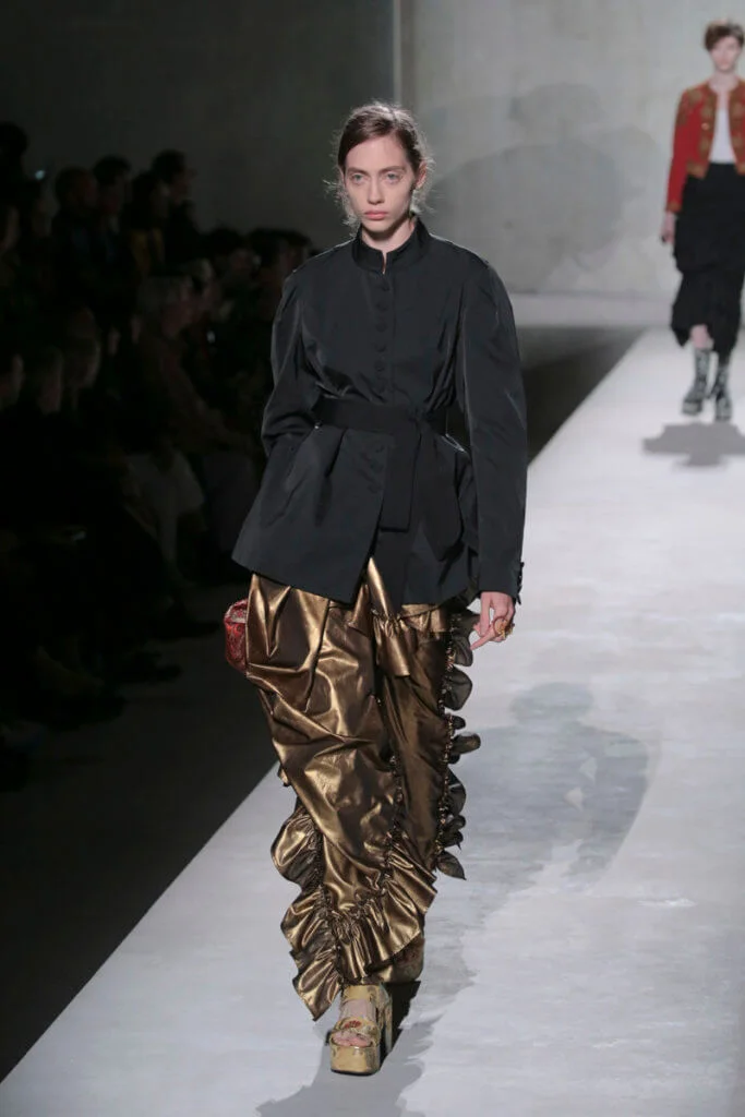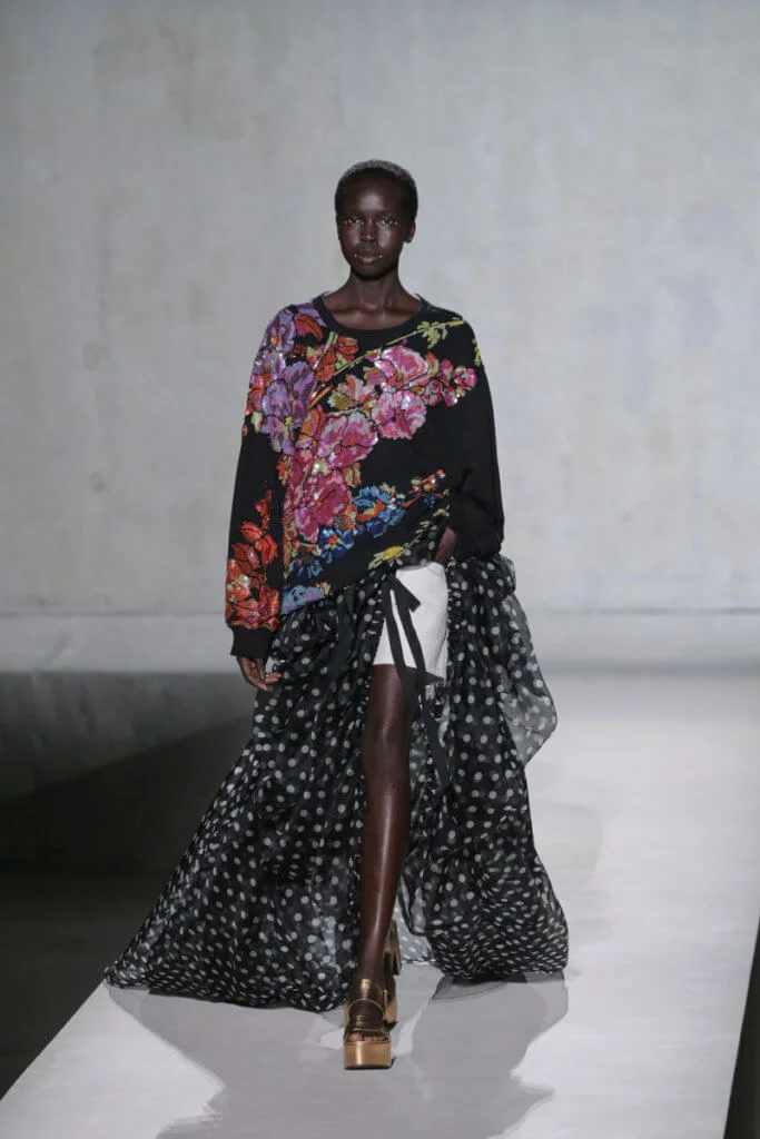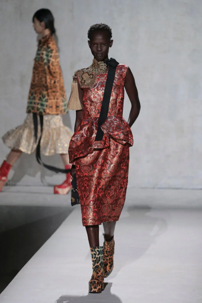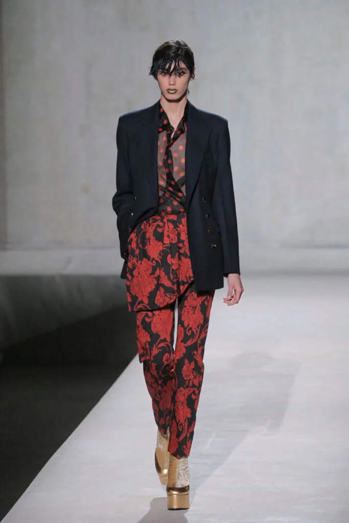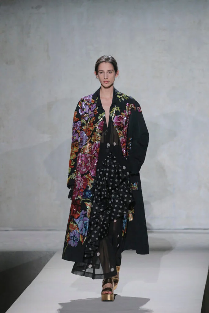 時裝界變幻莫測,但Dries Van Noten今時今日仍然忠於他對花卉、色彩的熱愛,他和Lacroix送上了繁複繽紛的動物紋元素、花卉圖案,配上宮廷式的面料,例如紡紗和緞面材質等,整個表演根本是一場視覺盛宴。