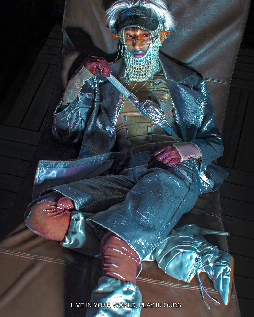 品牌以「HYBER_CRAFTS」作為主題,反映一個在真實可觸碰與新興數碼存在之間的世界,標誌性的鋒利線條透過酸性綠的絲質及色彩花朵圖案在今季作出流動性的轉變,能身兼高尚派對服飾及冷酷便服。
