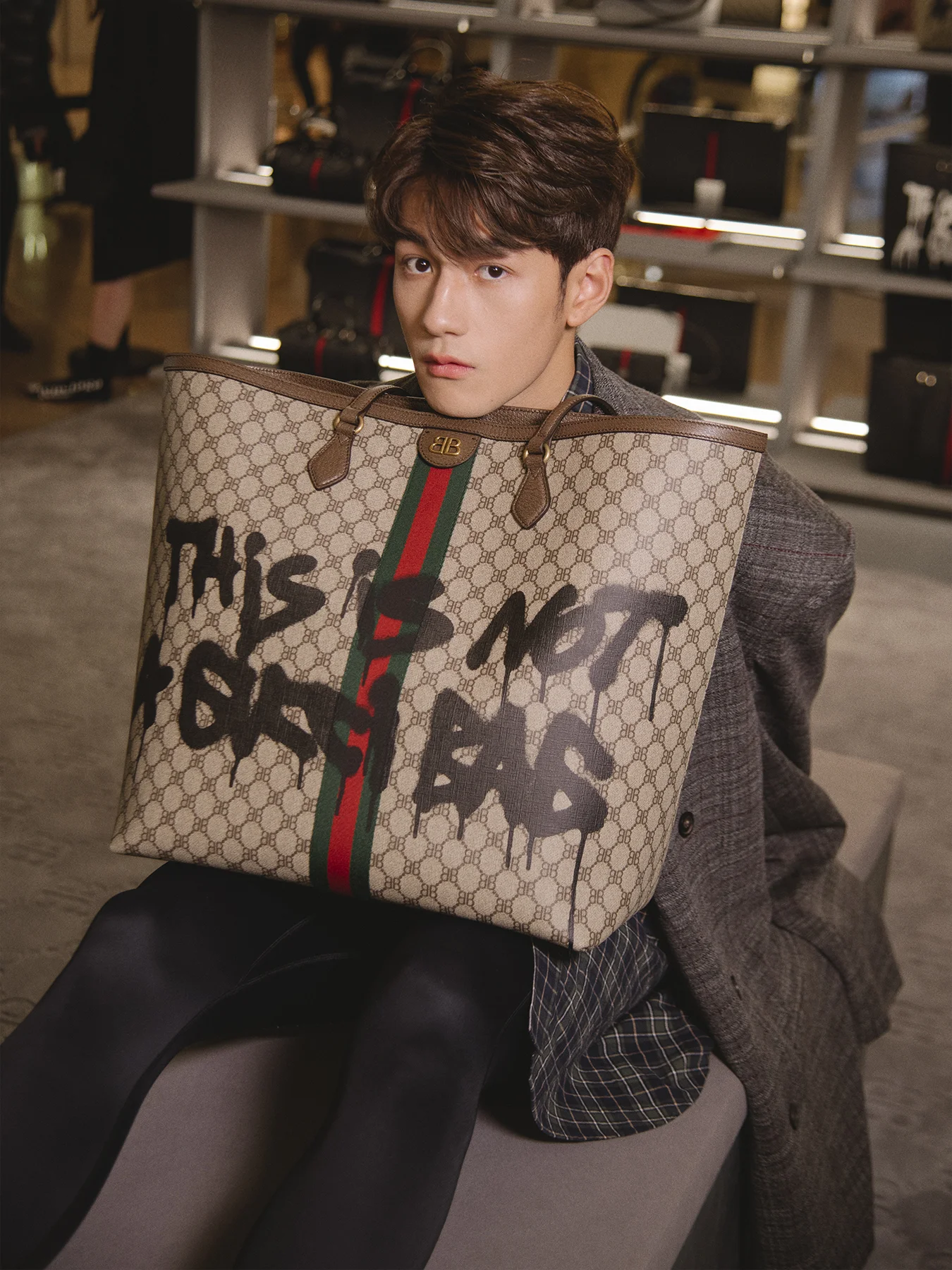 驟眼一看,以為它是個 Gucci 手袋,認真點看,原來是 Balenciaga!兩個品牌共同推出的新企劃 “The Hacker Project”,把品牌的元素「黑」入產品當中。今回把 Gucci 的”雙G” logo 改成”雙B”,期間限定體驗空間內更有本地塗鴉藝術家曾昭昶,為消費客人畫個人化塗鴉紙袋!
