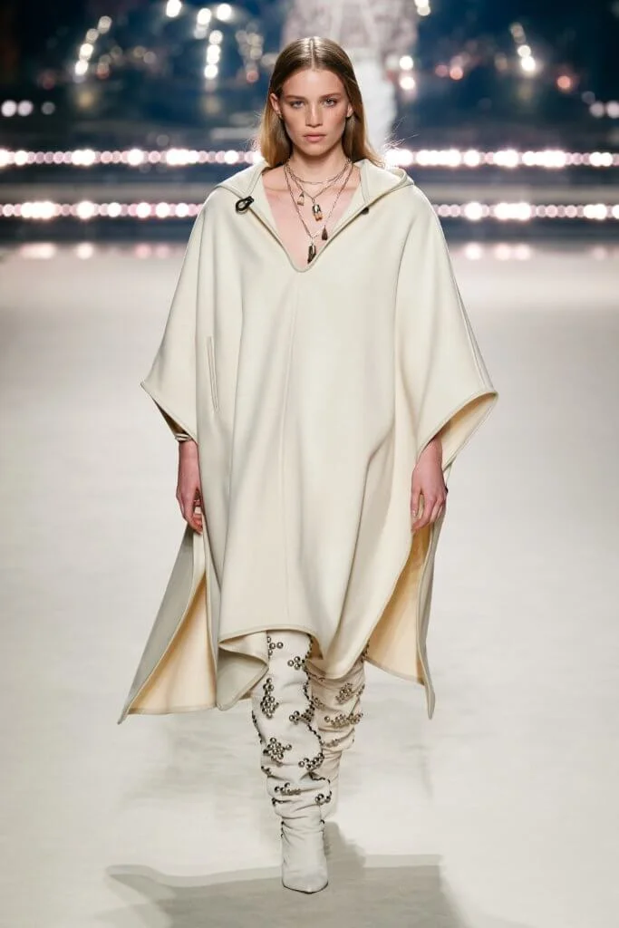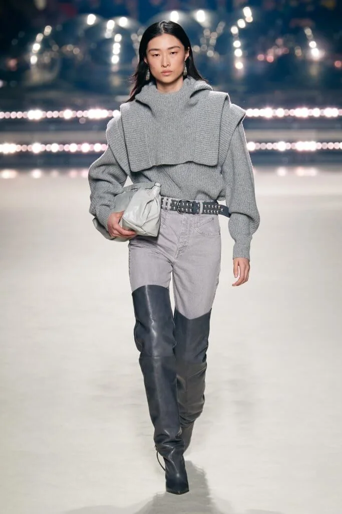 同樣是走波希米亞風格,Celine是屬於深夜,Isabel Marant則是陽光下的法式情懷。過去的Isabel Marant善於運用布料、細節的製作及染色與刺繡上的細膩工法,令原先小眾品牌成為大家都說得出口的時尚品牌。今季系列同樣採用這些原素,特別是上寬下緊的輪廓中配上褶皺的中筒靴,都是大家熟悉的畫面。但不同之處,是次系列加入八十年代寬大的肩部設計,實穿針織長裙、亮黑色的派對禮服,配上腰帶,有點混合當下的潮流元素,但又有自己強烈的個人風格,不難看得出會更易吸納一班年輕消費者。